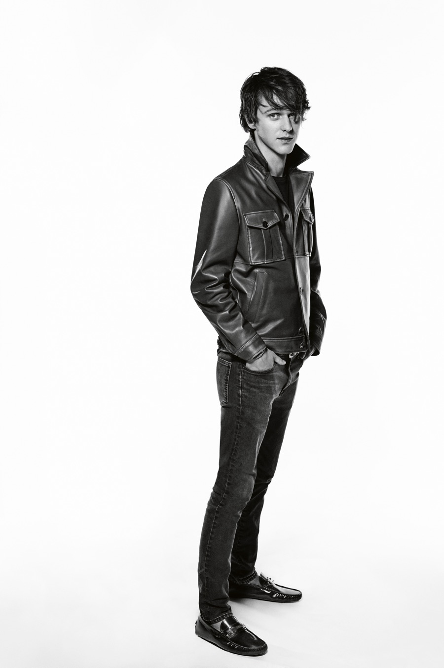 Tod’s presents its latest lifestyle initiative with Tod’s Band. The virtual club brings together twelve international personalities who adhere to a modern code of style. Making their spring debut, actor Max Minghella, dancer Eric Underwood, model Wang Fei and editor Sven Schumann are among the men assembled to take part in Tod’s timeless Leo loafers. The luxury footwear style is made in Italy, featuring hand sewn craftsmanship and precious materials.