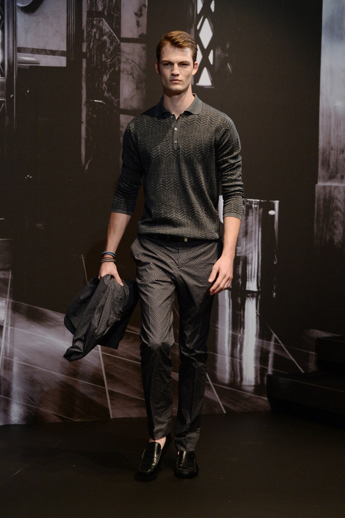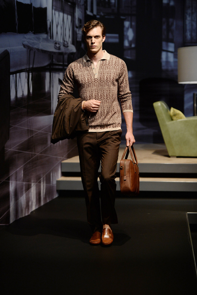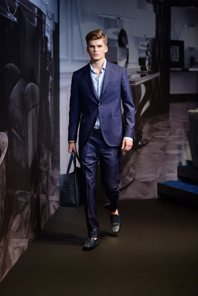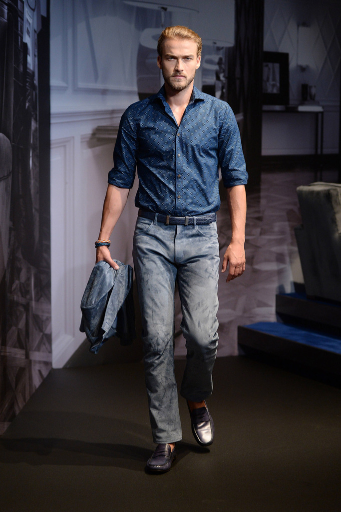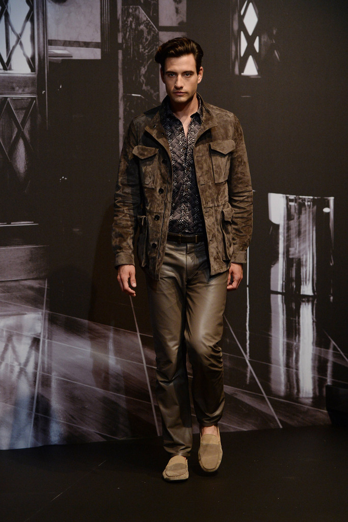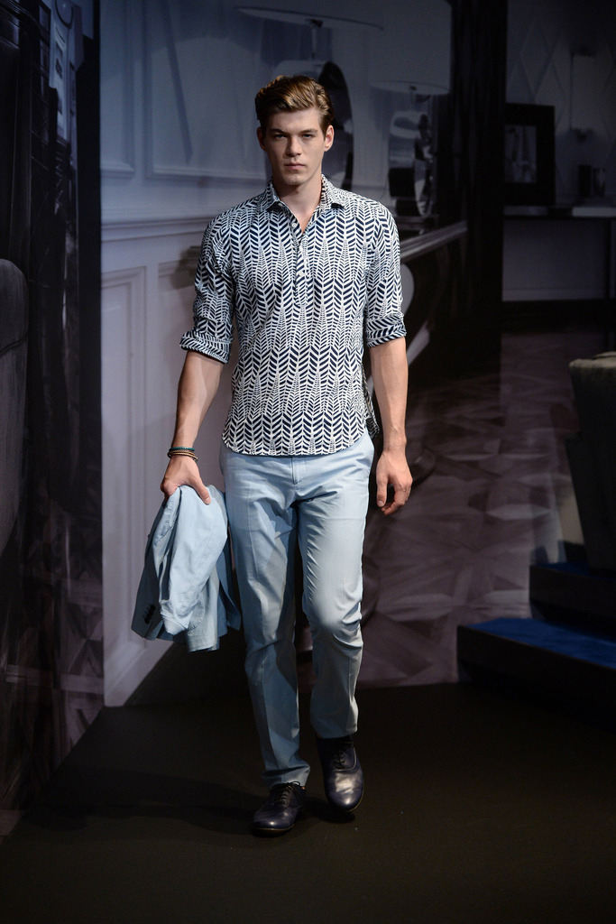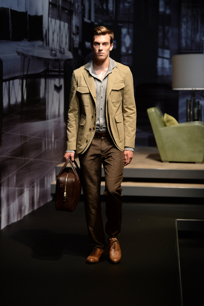 Tod’s Spring/Summer 2015–New Tod’s creative director Andrea Incontri collaborated with the label’s design team for spring/summer 2015. Tod’s, famous for its driving shoes, introduced a timeless range of clothes for its sophisticated man of the world. Silhouettes were tailored as separates came out in hues of blue and brown. Jackets with field pockets, double-breasted blazers worn unbuttoned, loose printed button-downs, trim pleated trousers and suede jackets contributed to an easily accessible debut outing from Incontri.