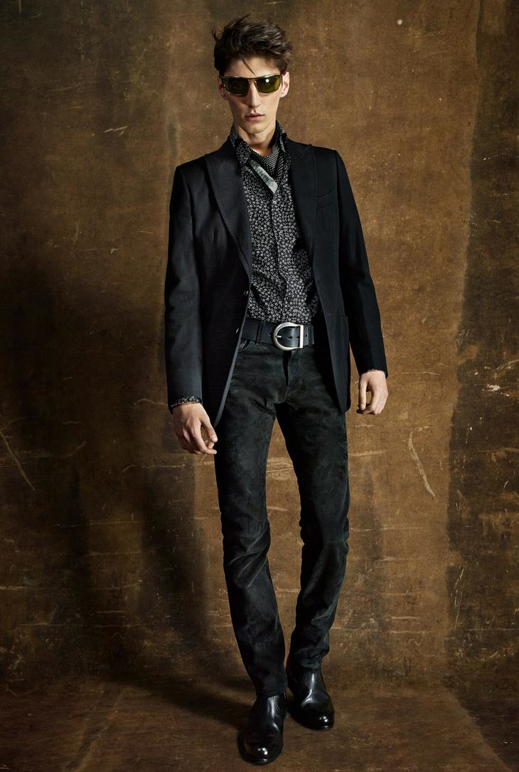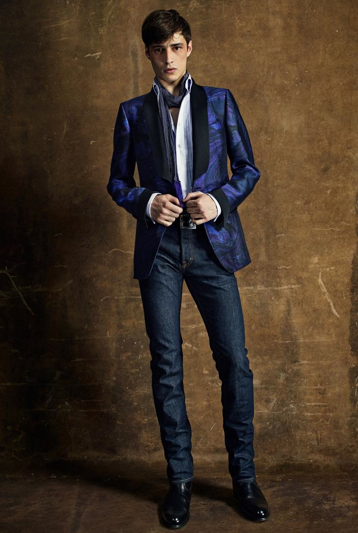 Tom Ford Men Spring/Summer 2015-American designer Tom Ford finds a relaxed voice for spring/summer 2015. Inspired by the southwestern state of New Mexico, Ford reinterprets luxe, finding a place for suede, leather and slim-cut denim. Ready for everyday life, pullovers with popped collars, large belt buckles, sports jackets, lightweight coats, printed shorts and other great items come together for an Americana treat. The results are a world apart from Ford’s usual affair but ultimately equally desirable.