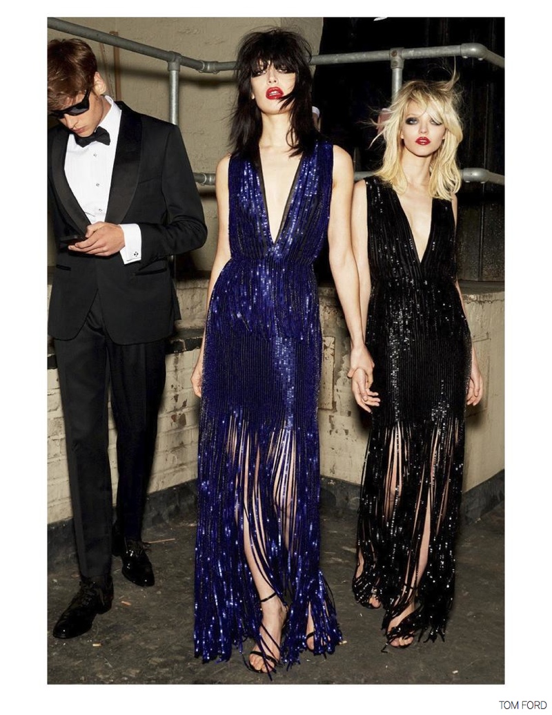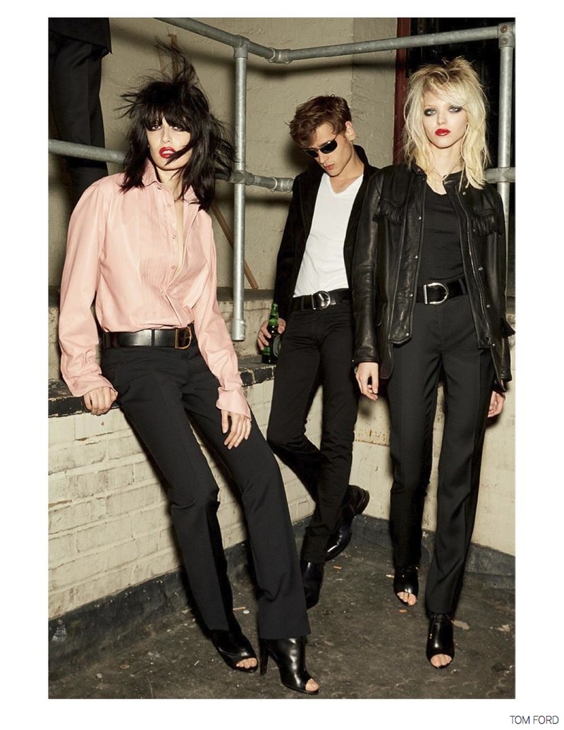Tom Ford Resort 2015-Photographed by Tom Ford himself, model Matthijs Meel joins Sabrina Ioffreda and Sasha Luss for a look at the designer’s resort 2015 collection. Infusing his signature glamorous take on fashion with a rock ‘n’ roll energy, Ford’s luxurious styles are effortless. Embodying a nonchalant presence, Matthijs is cool in black and white, alternating between an evening tuxedo and a simple denim look.