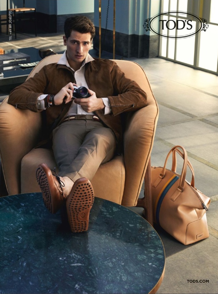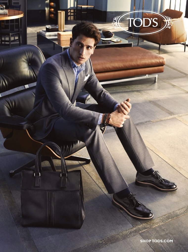 Tod’s Spring/Summer 2014 Campaign–For their spring/summer 2014 campaign, Italian luxury shoe and leather goods brand Tod’s enlists British model Tom Warren, who poses for a series of sophisticated ads. Embodying the modern and stylish business traveler, Tom dons standout pieces from the label’s spring offering, which includes capacious luxury leather bags, classic dress shoes and Tod’s signature loafers.