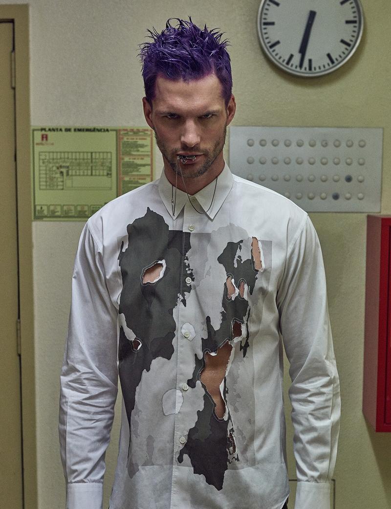 GQ Portugal gives us a print overdose with a new editorial featuring model Tomas Skoloudik. Wearing fashions from a host of luxury labels that range from Loewe and Givenchy to Louis Vuitton, Tomas is styled by Jan Kralicek. Rocking a purple hairstyle for the bold outing, Tomas is photographed by Branislav Simoncik.