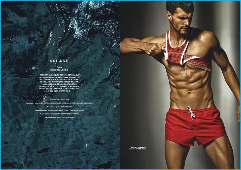 Tomas Skoloudik appears in a swim inspired editorial for Shangay Style.Pin