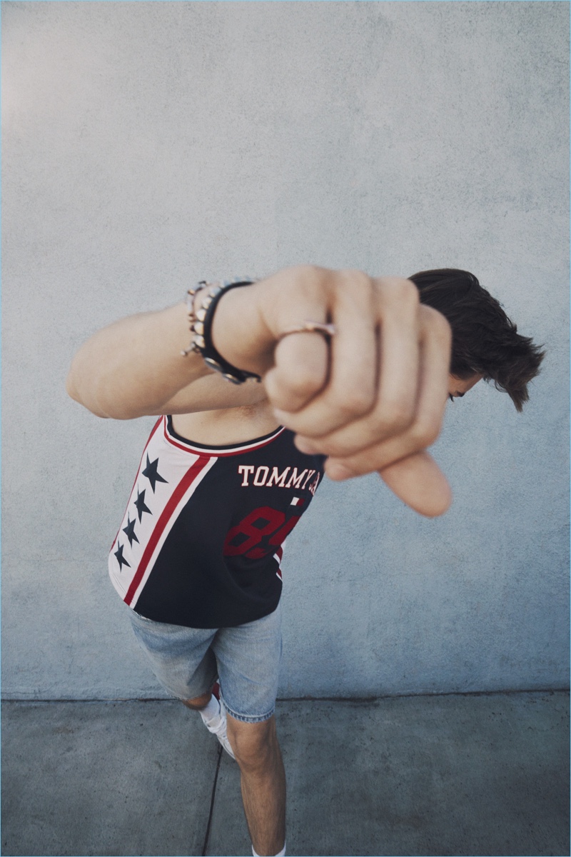 Tommy Hilfiger continues to ride the nostalgic nineties wave with great success. The brand unveils its spring-summer 2017 campaign for Tommy Jeans. The advertising images feature the label’s latest capsule collection. After fronting this season’s Hilfiger Denim campaign, models Anwar Hadid, Lucky Blue Smith, and Sofia Richie reunite with the brand. Lucky and Anwar sport relaxed styles from Tommy Jeans, which range from a basketball tank to denim carpenter jeans.