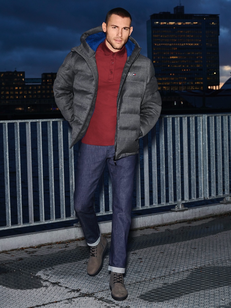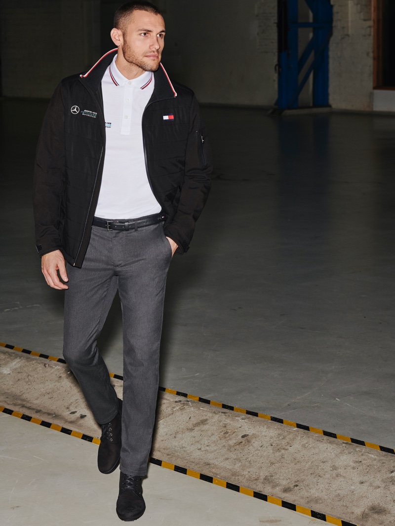 Making a case for smart style, Corey Saucier dons essentials from the Tommy x Mercedes-Benz fall-winter 2019 collection.Pin