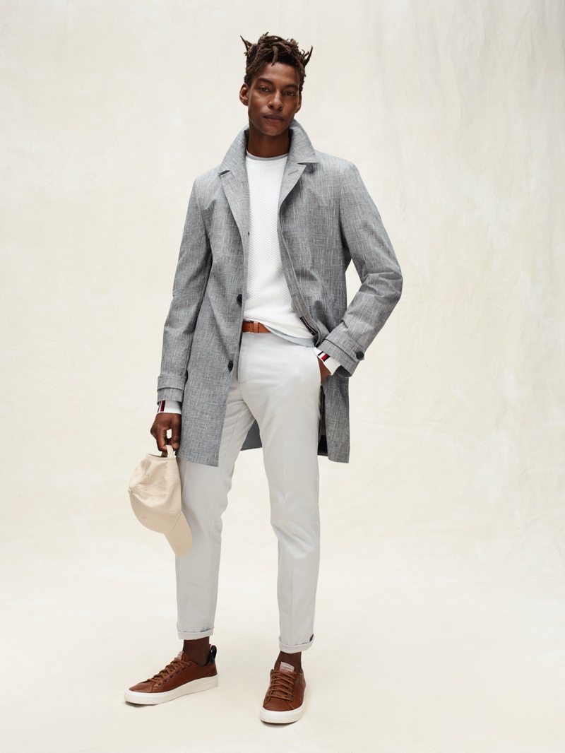 PinEmbracing a timeless silhouette, O’Shea Robertson and Adrien Sahores sport menswear from Tommy Hilfiger’s spring-summer 2020 collection.