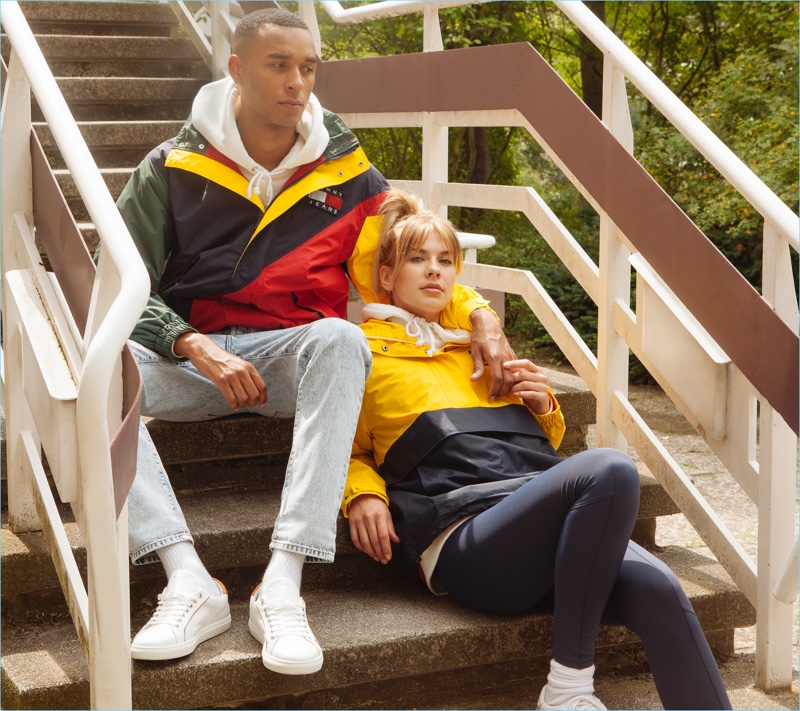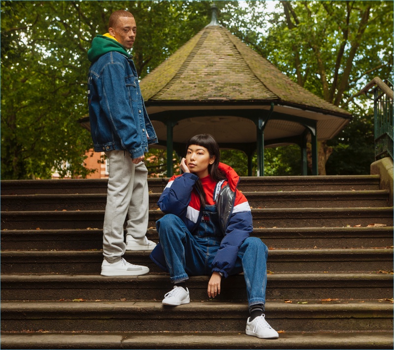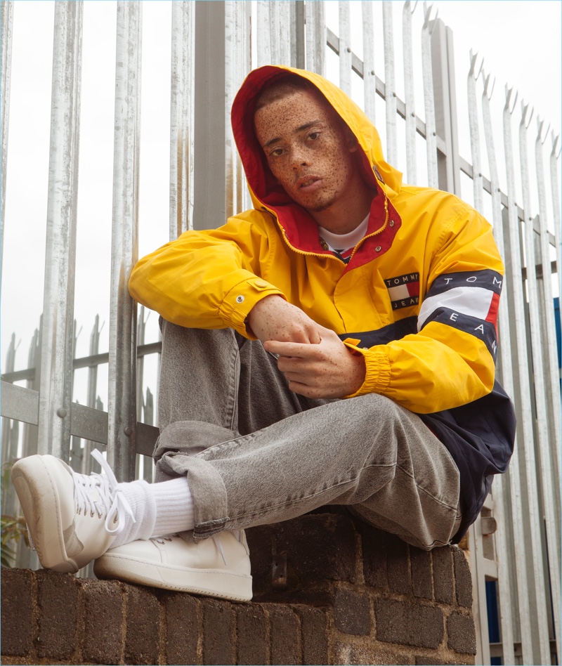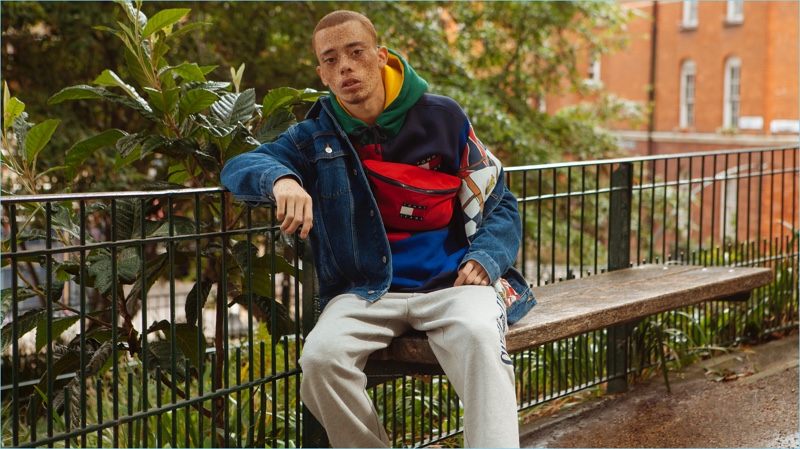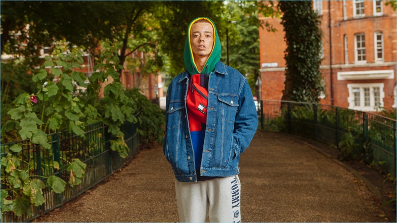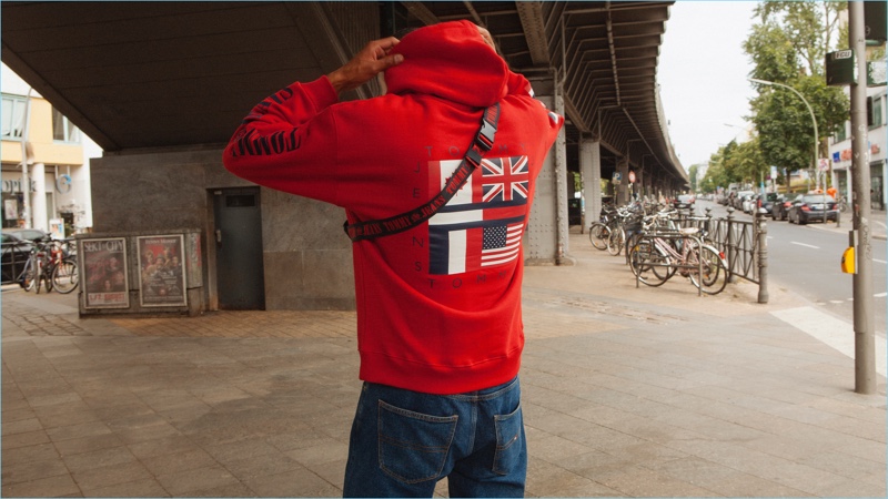 Tommy Hilfiger serves up another serving of nineties nostalgia with its latest outing for Tommy Jeans. The fashion brand unveils its fall-winter 2017 capsule collection. Elliot Jay Brown, Zsá Zsá Inci Bürkle, Aaron Max, and Jiahe Zhang embrace the retro styles as they explore London and Berlin. Bright colors, logos, and color blocking come together for the lineup. Hero pieces range from a blue denim jacket and oversize hoodie with a flag print to basic gray jeans.