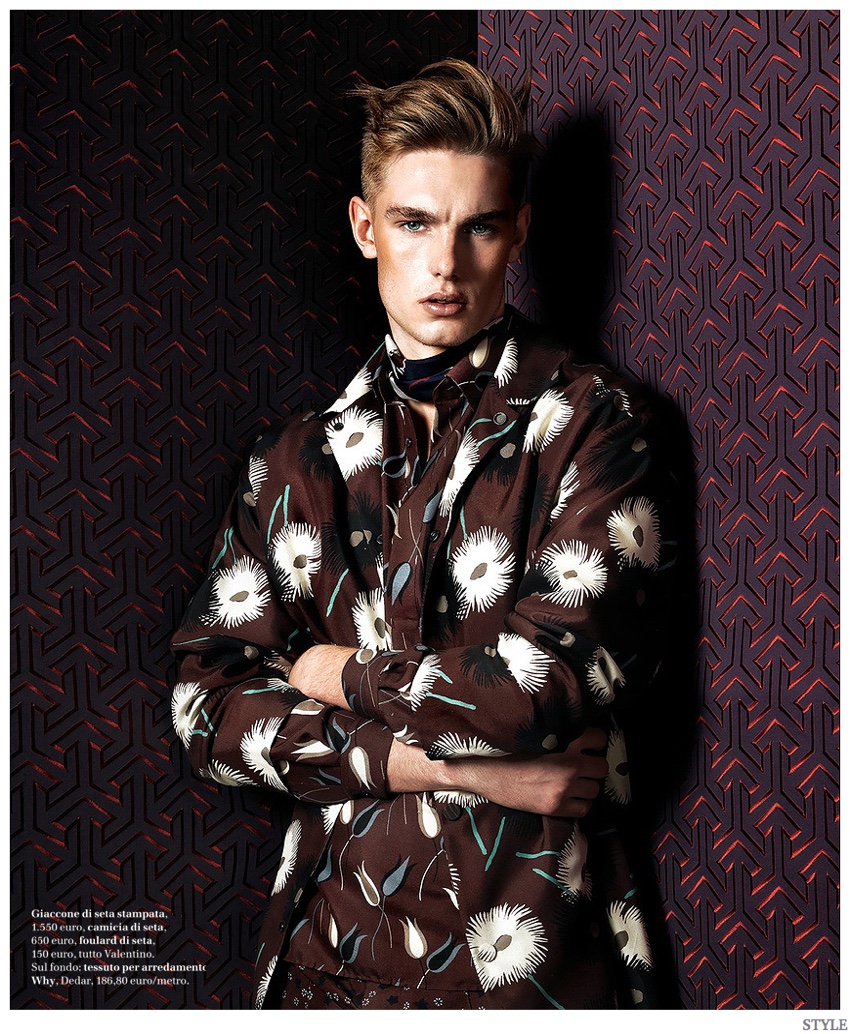 Photographed by Giovanni Squatriti, model Tommy Marr heads to the studio for a lesson in printed fashions. Outfitted by stylist Alessandro Calascibetta, Tommy is treated to a decadent wardrobe, rich in designer prints. From Paul Smith and Prada to Valentino, Tommy is in top form, delivering a welcomed print overdose.