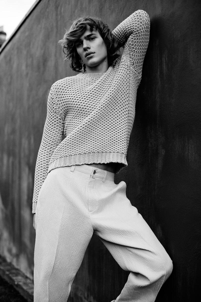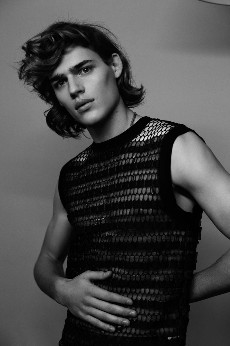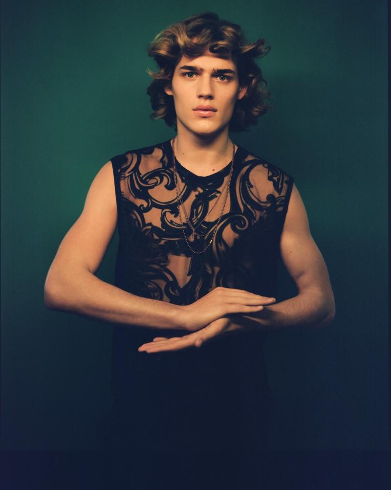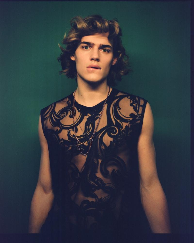 Romantic Vibe–Dutch model Ton Heukels returns on the pages of UnFLOP magazine with this new story, lensed by photographer Jeff Hahn. Sporting soft wavy hair, the blond model is styled by Madeleine Østlie in a wardrobe where the classic menswear designs are revisited in a more unusual way, thanks to fabrics and details generally used on womenswear. The lightness of impalpable fabrics, the shiny appeal of sequins and the seductive facet of lace are just some of the unique features of Ton’s wardrobe, which also plays with slim-fitted suits, see-trough garments and metallic accessories. / Hair by Louis Ghewy. Makeup by Nami Yoshida.