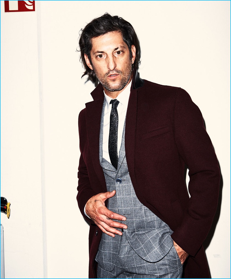 PinTony Ward dons a check Calvin Klein suit with an Eton shirt, Drykorn tie and gorgeous burgundy BOSS by Hugo Boss coat for Wormland’s fall-winter 2016 campaign.