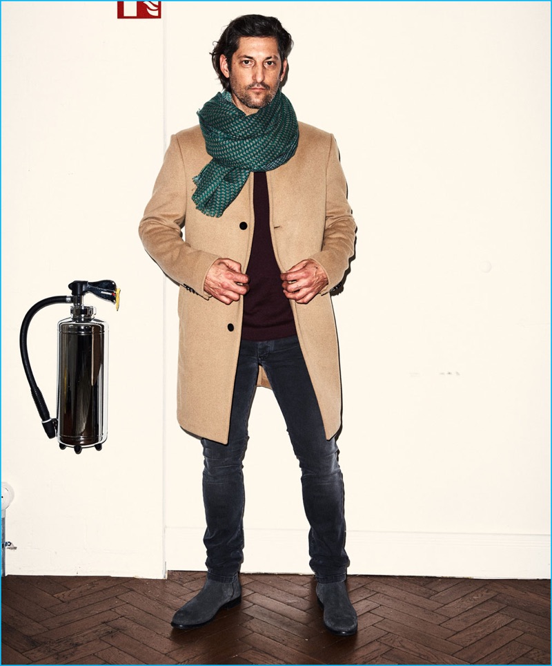 PinTony Ward embraces the classics, wearing a Calvin Klein camel coat with Drykorn jeans, a Joop! sweater and a scarf from Erfurt for Wormland’s fall-winter 2016 campaign.