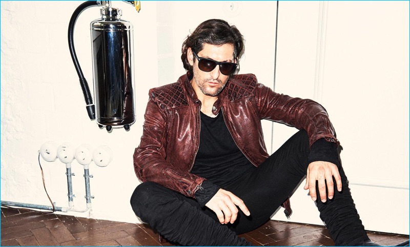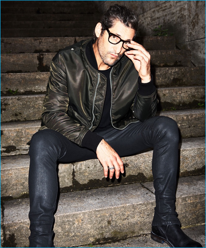 PinGoing sporty, Tony Ward is pictured in a bomber jacket and slim-fit denim jeans from Diesel Black Gold for Wormland’s fall-winter 2016 campaign.