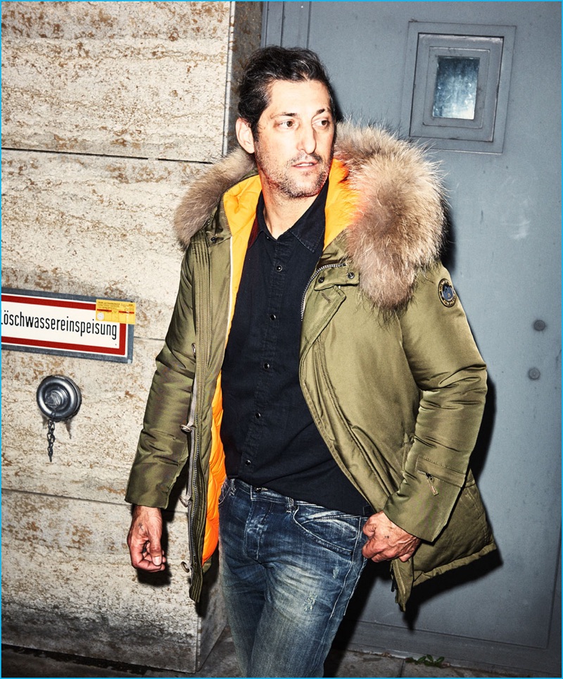PinTony Ward rocks a Blauer parka with Tigha black denim jeans for Wormland’s fall-winter 2016 campaign.