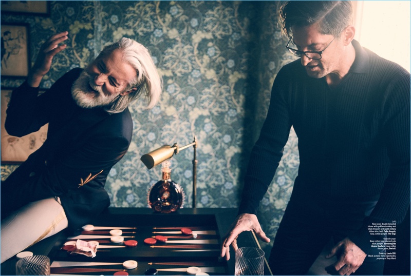 Tony Ward and Aiden Brady star in a fashion editorial for The Rake. Tony wears a Ralph Lauren Purple Label look. Meanwhile Aiden sports a Ralph Lauren Purple Label art deco sweater and trousers.Pin
