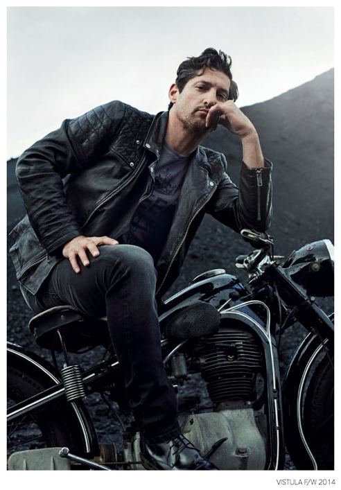 The Men’s World-After playing a cowboy for August Man, Tony Ward steps into the role of dapper leading man for the fall/winter 2014 campaign of Polish fashion label Vistula. Donning both formal and casual styles, Tony impresses in a strong fall wardrobe, captured by the lens of fashion photographer Mateusz Stankiewicz. From impeccably tailored suiting and outerwear in calming colors such as charcoal to effortlessly cool pieces like leather jackets and distressed denim jeans, Vistula delivers quite the modern occasion.