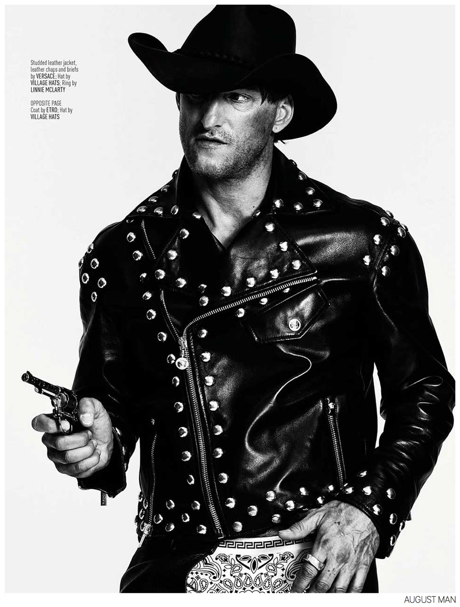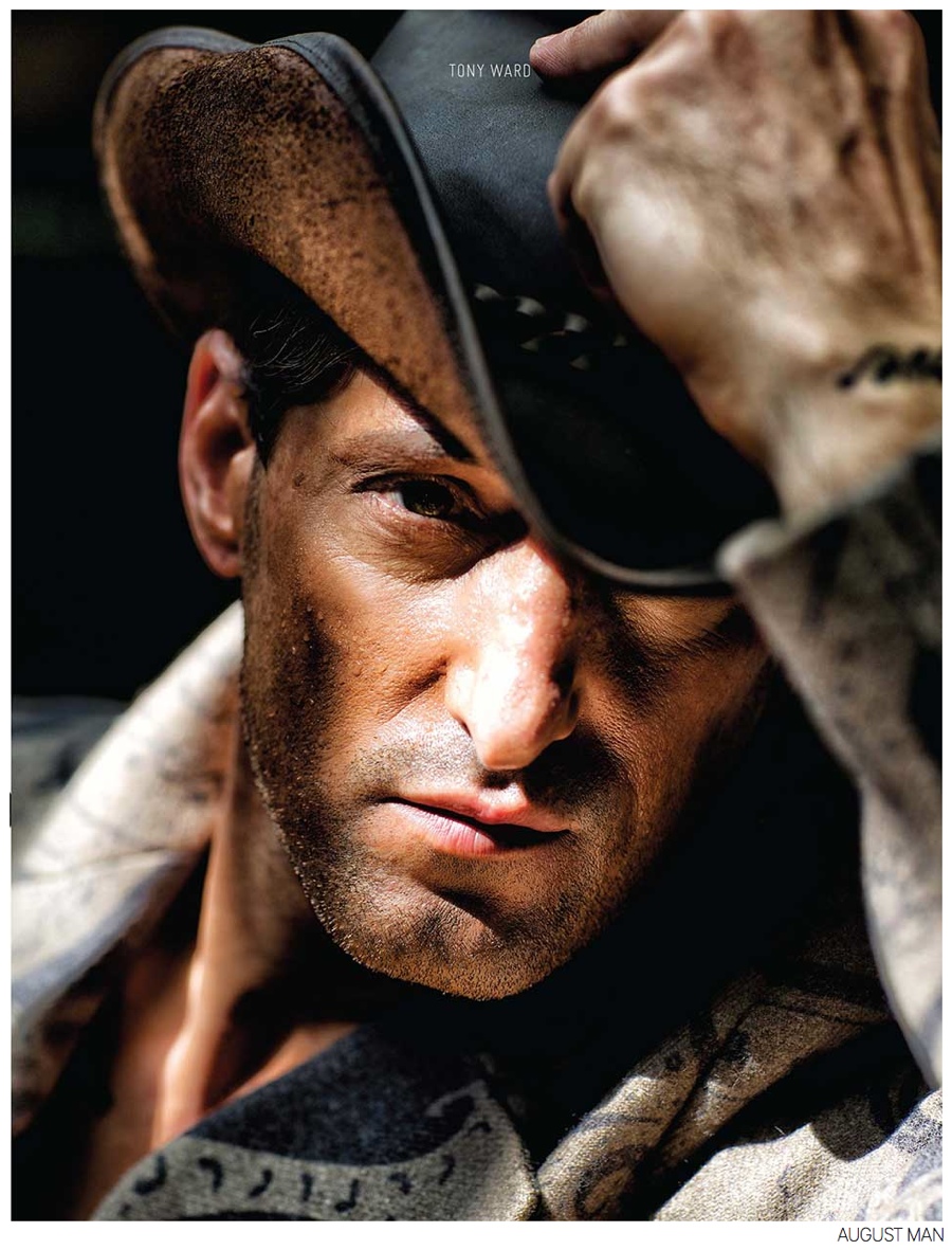 All About the Art-It looks like it just may be Ward season. Following an appearance in Wormland’s fall 2014 catalogue, model Tony Ward is front and center once more, starring in a dynamic fashion spread for August Man. Photographed by Alexander Beer, Tony morphs into a western figure for a fierce story styled by Camille Adomakoh. Presenting a dark, edgy persona, Tony sports dark fall fashions from labels that include Versace, Etro, Kenzo and John Varvatos.
