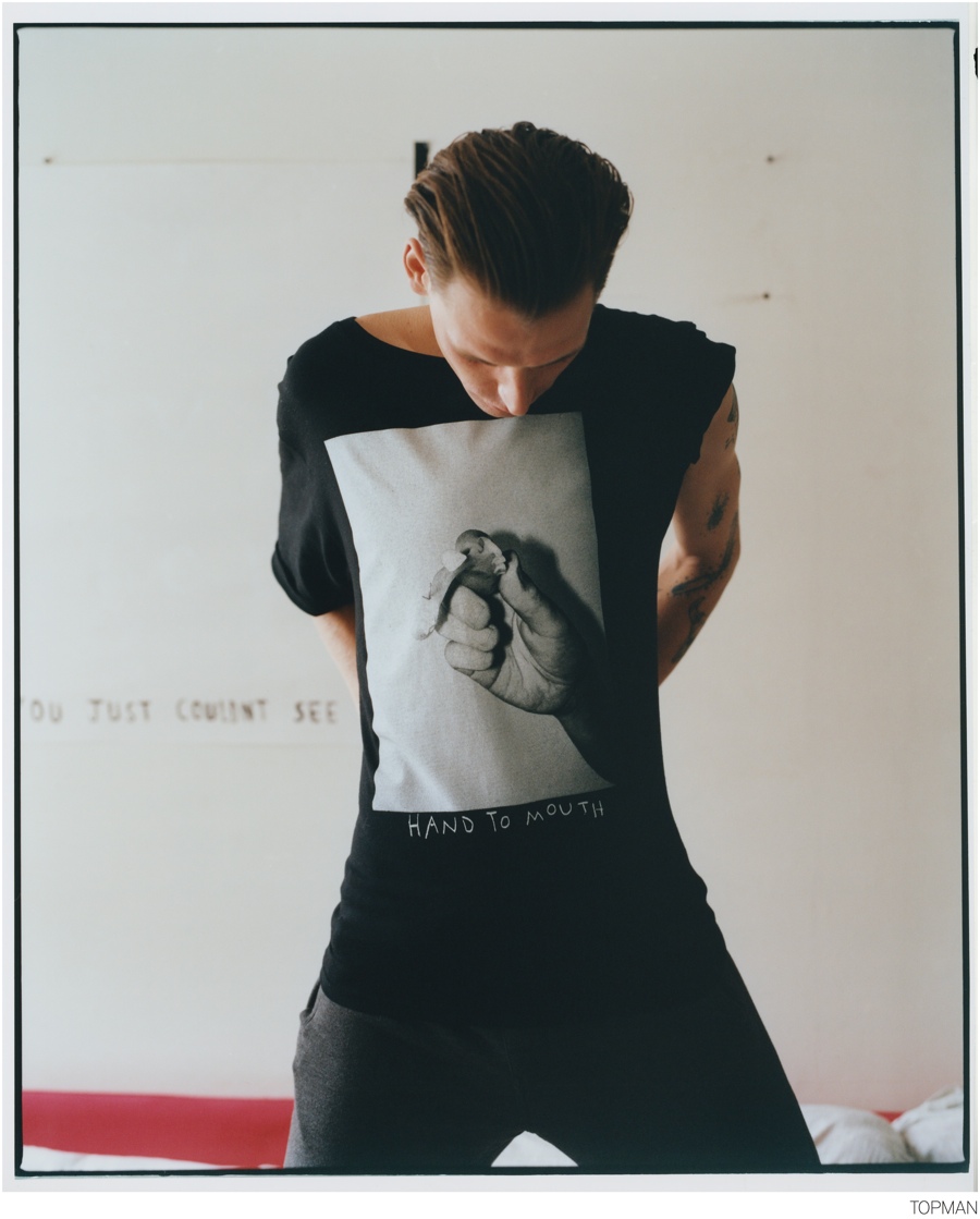 Topman x Richie Culver-For its latest collaboration, Topman connects with British artist Richie Culver for an eleven piece collection that features work from his early explorations as an artist. Known for his photography, mixed-media installations, collages and paintings, the collection contains its share of eye-opening pieces. Talking about the collaboration, which launches October 2nd, Culver expressed, “working with Topman means a lot to me, just like the British weather, sarcasm, football things people see as English or British, Topman is up there in my opinion. This collaboration feels personal to me and I’ve tried to make the collection as British as possible, pulling out pieces from my artwork to fit today’s Topman.”