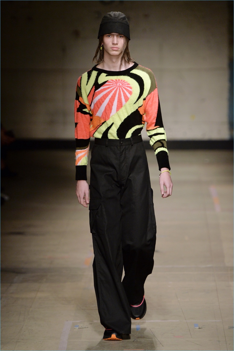 Topman takes an acid trip with bold colors for a playful fall-winter 2017 sweater.Pin