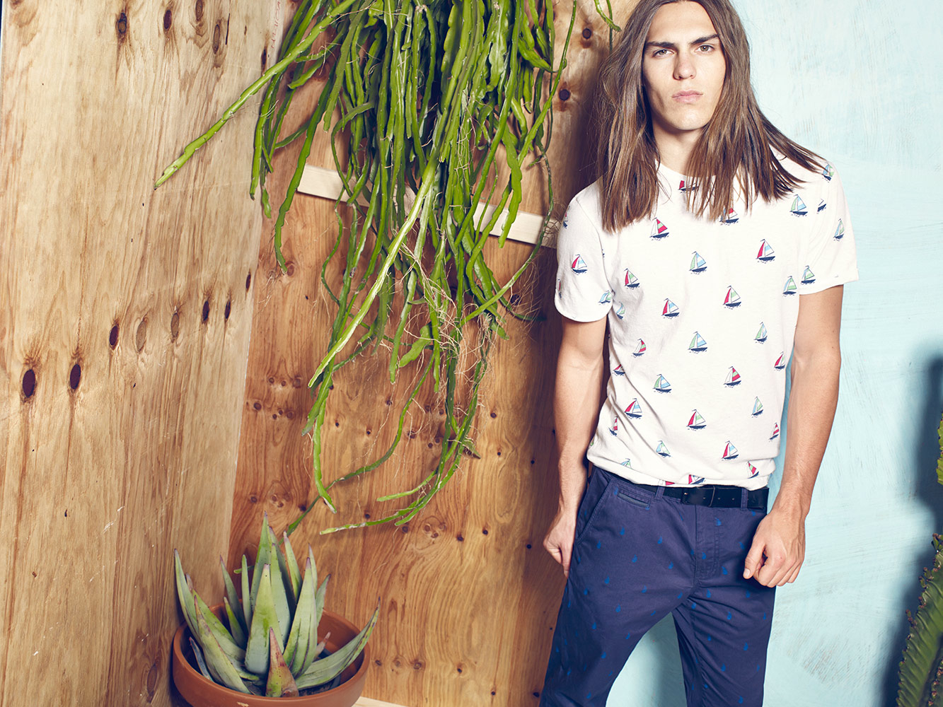 Fun Summer Style-After donning tennis-inspired looks for Pull & Bear, American model Travis Smith reunites with the Spanish label for a look at fun youthful summer styles. Photographed by Xevi Muntane, Travis is captured on a quirky set, wearing garments that take in many inspirations, whether its traveling at sea or enjoying a southwest adventure. Here, denim essentials come together with graphic tanks, comfortable t-shirts, pullovers and other items.