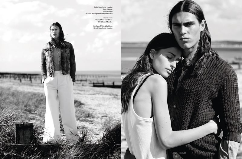 Open Sky, Wild Waves–Photographed for L’Officiel Hommes Germany, model Travis Smith connects with stylist Way Perry and photographer Neil Gavin for a picturesque summer story. Linking up with model Regitze Christensen, Travis is pictured in a mix of oversized and slim styles, ranging from wide-cut trousers to a slim fitting pair of denim jeans.