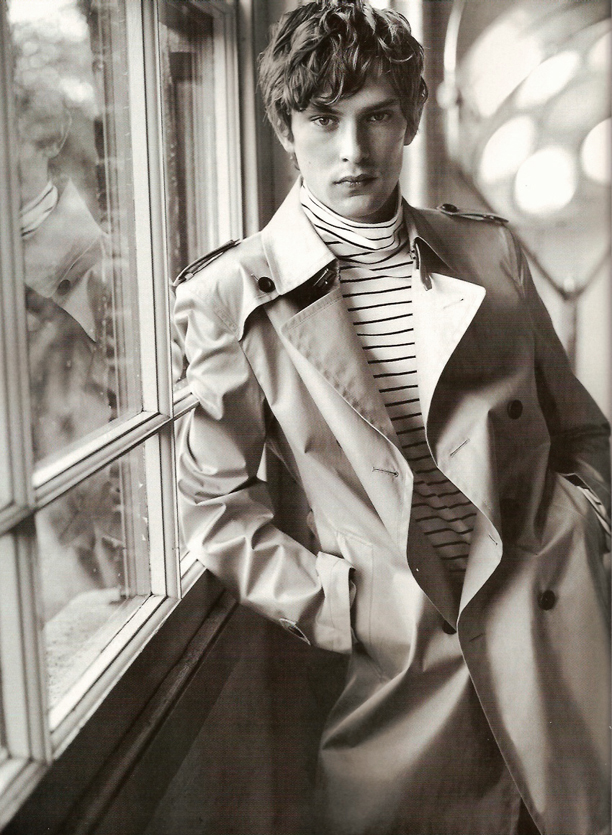 Mathias for Burberry–It may appear that Burberry only uses British talent in its various advertising campaigns, but that’s not the case. For spring/summer 2007, Danish model Mathias Lauridsen was an irresistible choice for Burberry Black Label’s campaign. A face that has impressed and stood out from the pack for many campaigns, Mathias easily stole the scene in one of Burberry’s classic trench coats and a pinstripe suit.