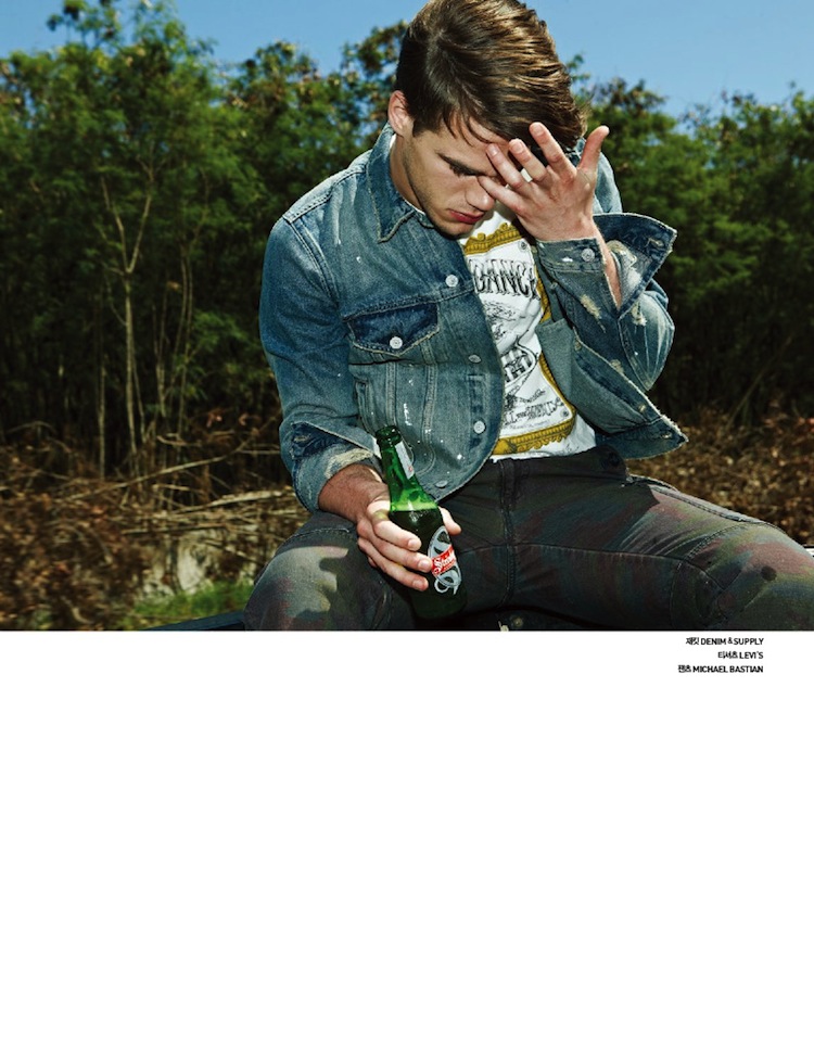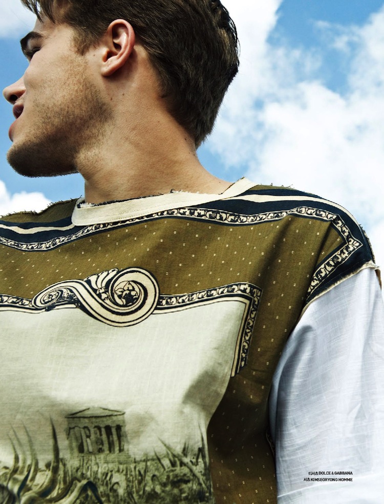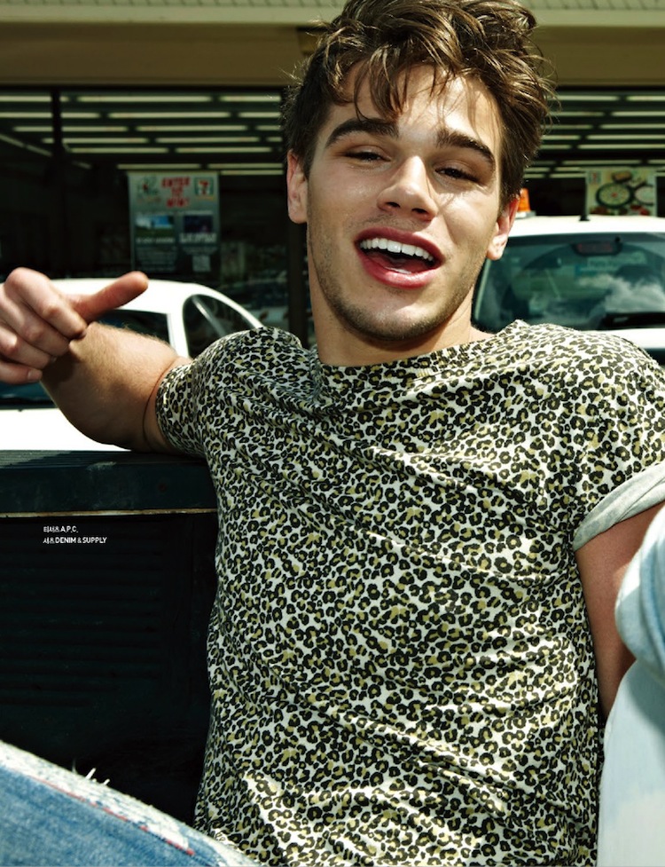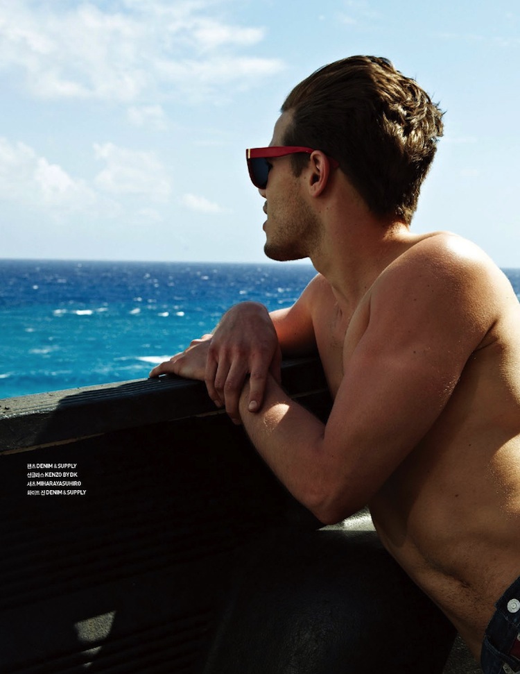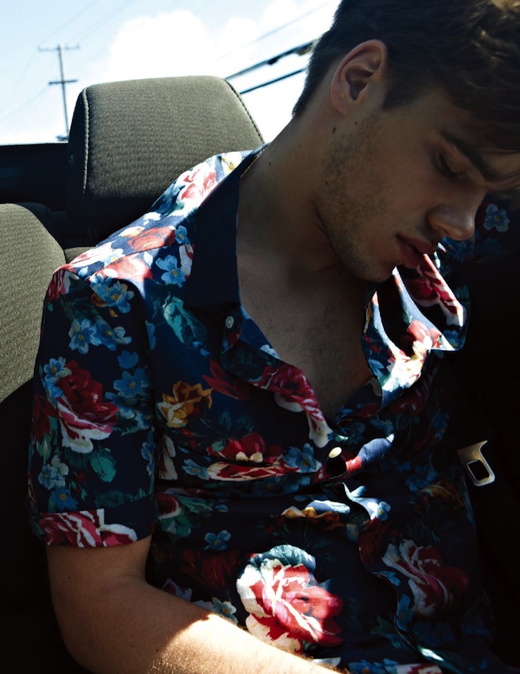 Summer Ride-Photographed for the latest issue of GQ Style Korea, Re:Quest model Tucker Des Lauriers is definitely in a cheerful mood, as displayed by the images shot by photographer Na Jung Moke. Enjoying a ride under the sun in a convertible, Tucker is styled by Na Na Park in a mix of playful styles, which includes animalier printed tees, colorful floral prints that decorate short-sleeved shirts, suede bomber jackets in vitaminic hues and the timeless denim. / Grooming by Hea Kyung Lim.