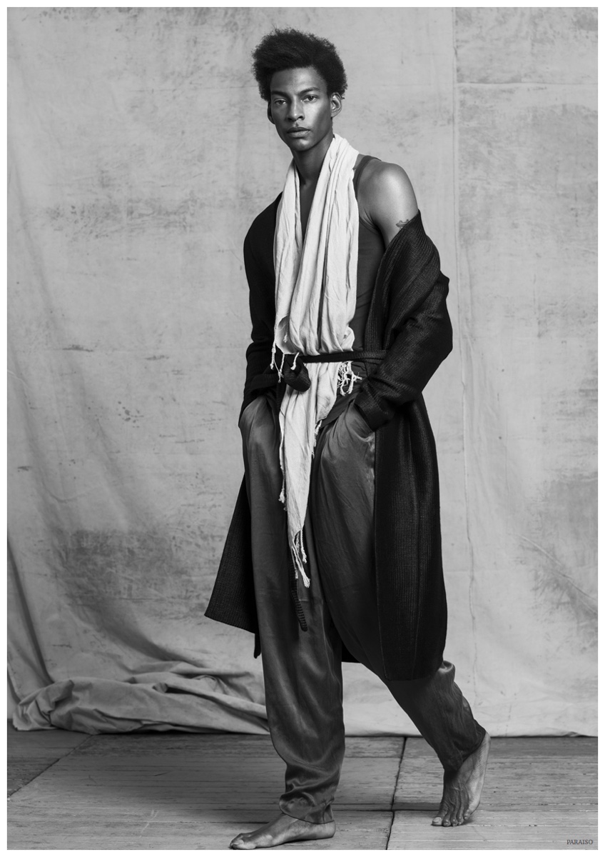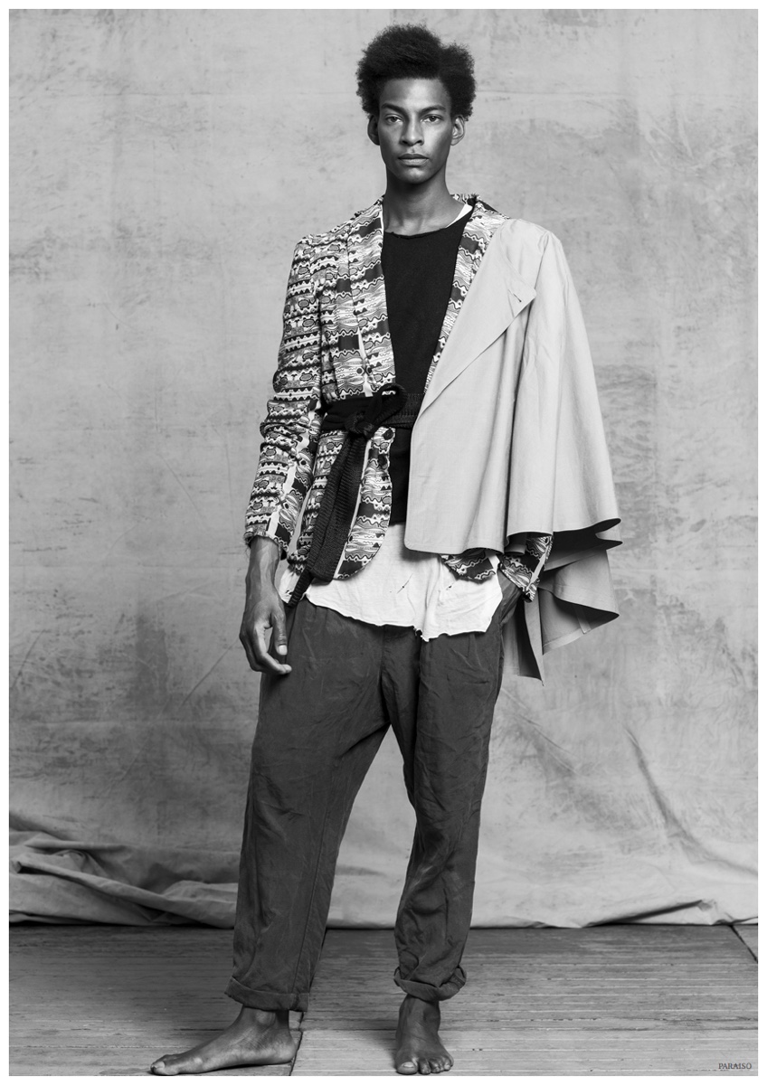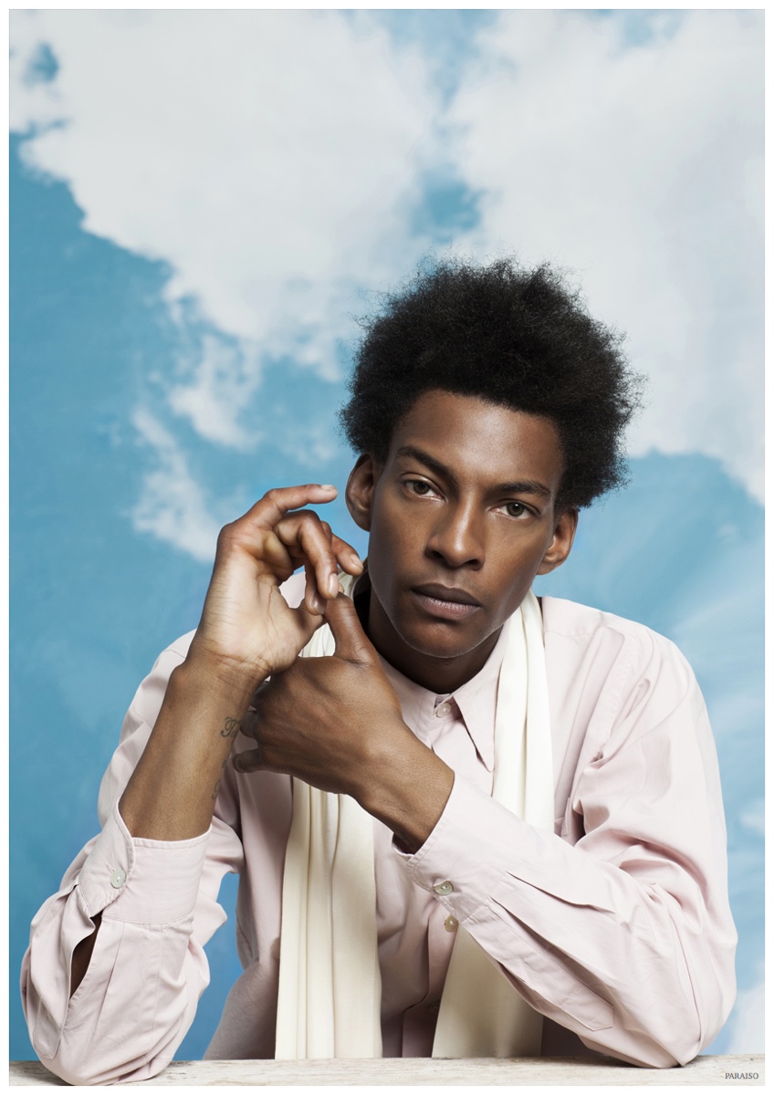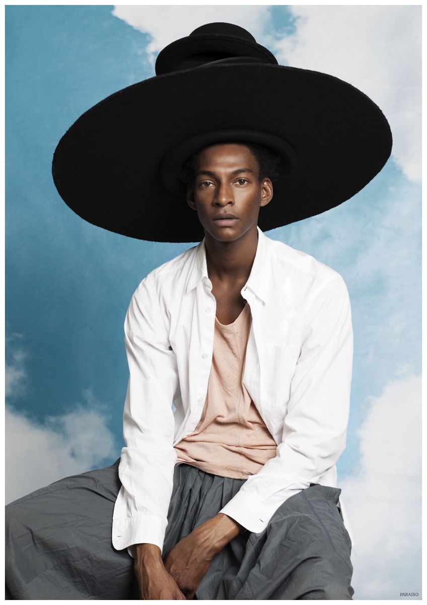After giving us a stunning view of spring with the latest edition of The Journal from luxury retailer Apropos, model Ty Ogunkoya is back in the studio with a new project. The View Management model connects with photographer Pablo Saez for quite the arresting shoot, commissioned by Paraiso magazine. Delivering an over the top spread, Ty is outfitted by stylist Marianne Kraus, as he dons an oversized hat a la Pharrell Williams and poses with a dangerous snake. / Set design by Gabriel Escamez.