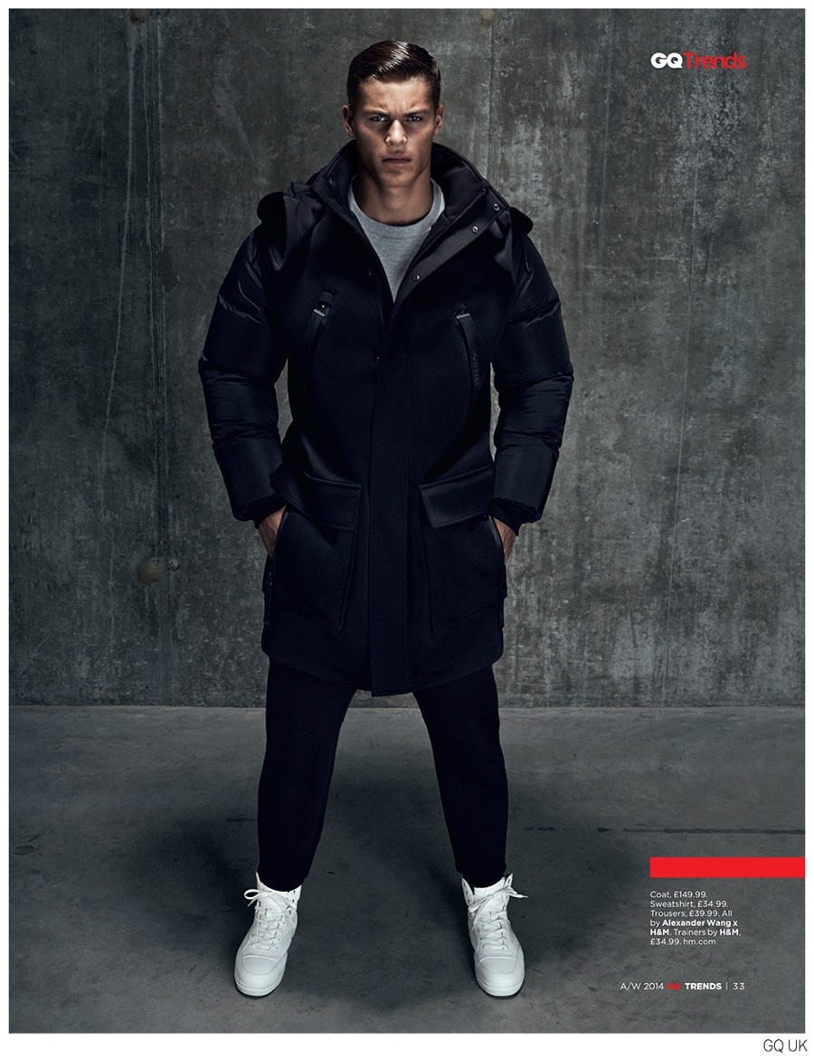 Alexander Wang for H&M First Look-Fresh off the presses, British GQ releases its ‘Men of the Year’ issue for October and with it comes a first look at the highly anticipated Alexander Wang for H&M collaboration. For the fashion spread, model Tyler Maher is photographed by Cameron McNee and styled by Jessica Punter. Drawing upon the sport of boxing for inspiration, Wang reinforces his sporty aesthetic for the collaboration. Black and gray come together for a cool lineup that includes structured activewear, sweatshirts with raised logos, a puffer jacket and more. An obvious must-have from the collection release will be Wang’s name adorned sunglasses. The collection hits stores November 6th.