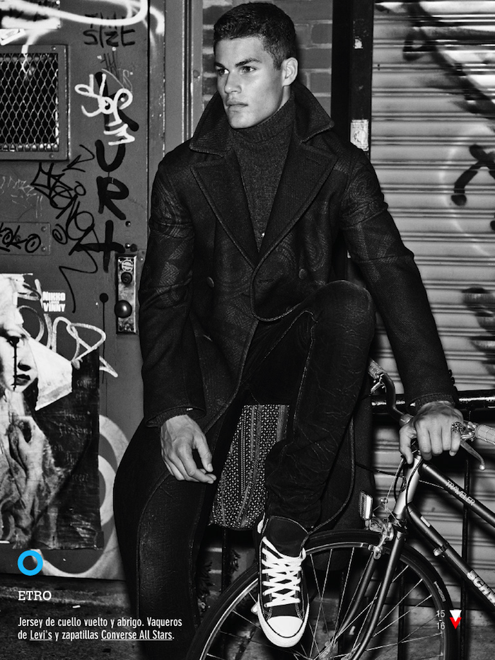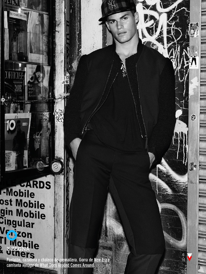 Downtown Boy–Captured by Giampaolo Sgura for the September issue of Spanish GQ, model Tyler Maher visits the Big Apple in this new fashion story, styled by Miguel Arnau. Captured exploring the streets of downtown New York, Tyler wears denim, paisley-printed trousers and leather jackets, pulling out a wardrobe which includes pieces from the likes of Tommy Hilfiger, Givenchy and Roberto Cavalli amongst others. / Photography assistance by Filippo Tarentini and Gary Golembiewski. Hair by Ben Skervin. Makeup by Nikki Manray.