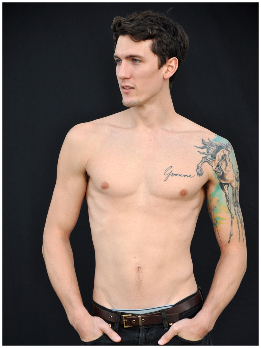 Tyler Riggs goes shirtless unveiling his tattoos for a digital photo update.