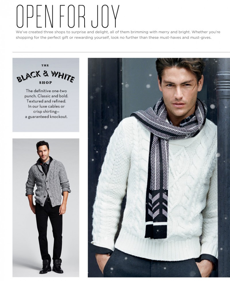 Open for Joy-Models Tyson Ballou, Noah Mills (IMG), Daniel Lonnstrom (Fusion) and Corey Baptiste (VNY) come together to celebrate the holiday season with Banana Republic. Photographed by Norman Jean Roy with styling by Sean Spellman, the lot embrace Banana Republic’s festive style motifs for the season. From their classic black & white shop to the sporty apres ski shop and cheerful plaid shop, the retailer lays out the essentials for a sharp holiday season.