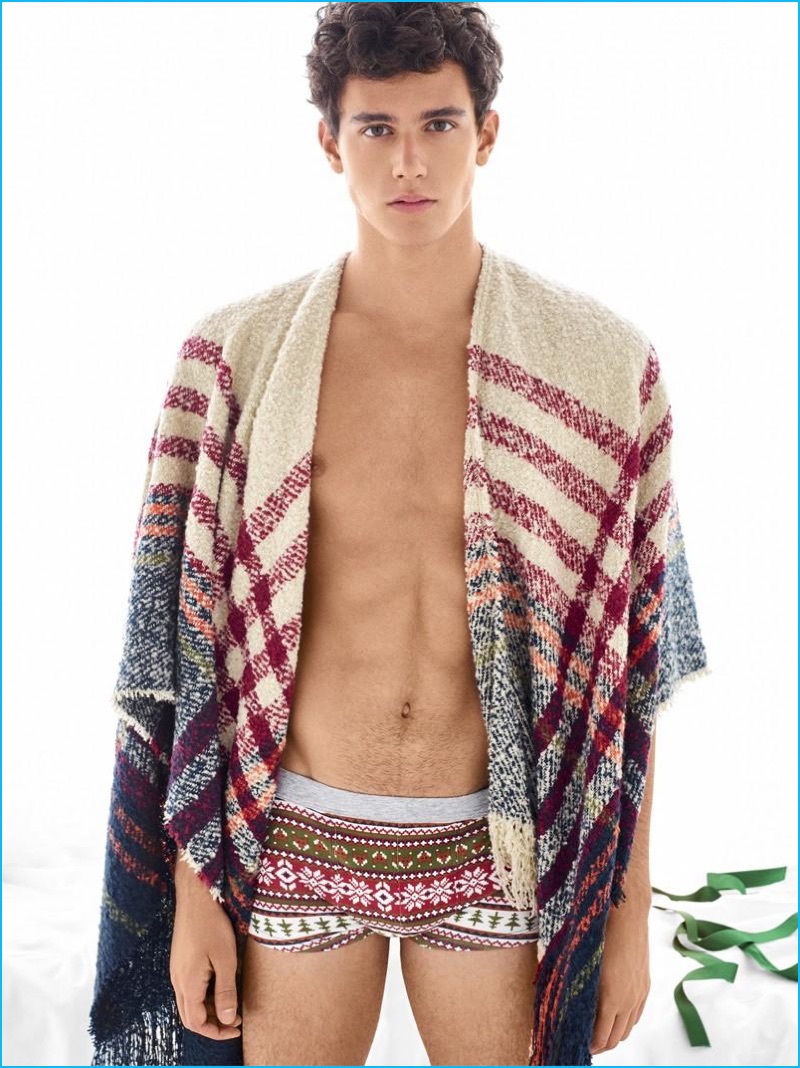 Undercolors of Benetton celebrates the holidays with a festive mix of winter prints and colors. The brand taps models Xavier Serrano and Victor Ndigwe to star in its holiday 2016 campaign. Giulio Rustichelli photographs the pair, joined by He Cong. Here, stylist Aurora Sansone pulls together a showcase of Undercolors of Benetton’s pajamas, underwear, and comfortable tees for the occasion.