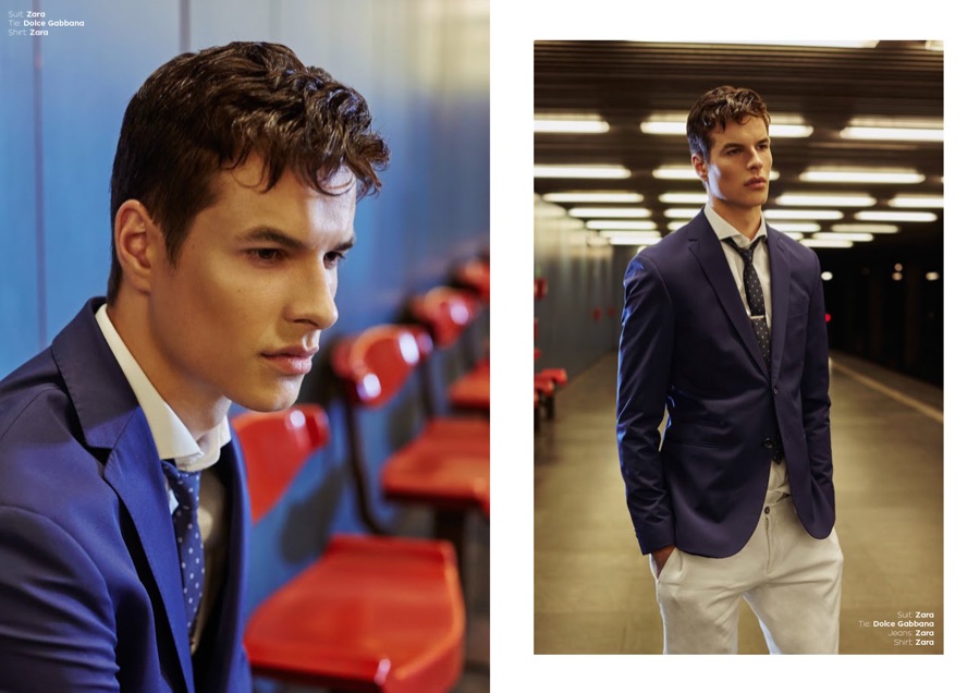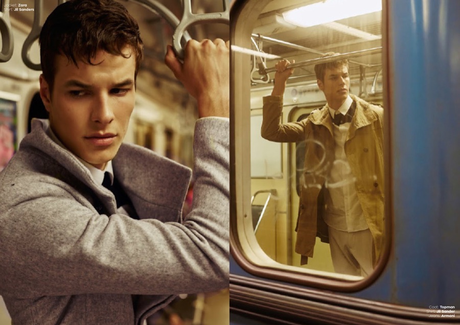 Following a debut lensed by photographer Andras Vizi, Filip (Wam Models) returns to our pages with a new exclusive. Going underground, Filip is a vision of youth as he links up with fashion photographer Mate Gregus. Wearing smart contemporary fashions from Zara, H&M and other brands, Filip is styled by Frida Balla. / Makeup by Eszter Galambos. Hair by Laszlo Pasztor.