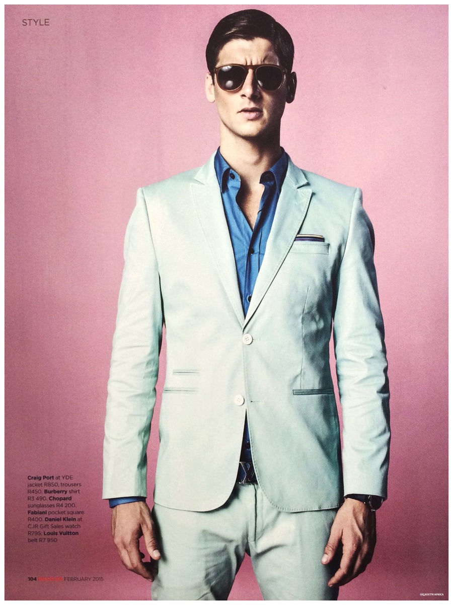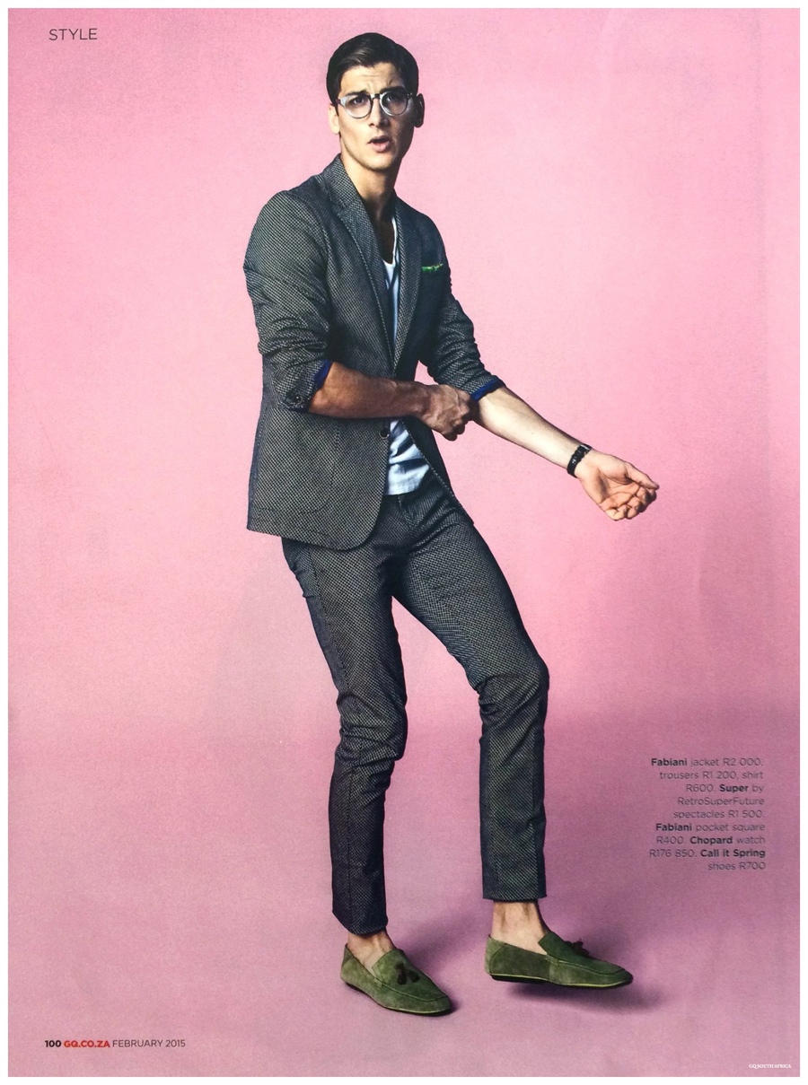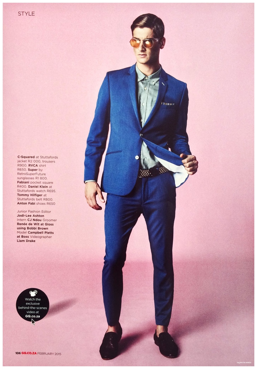 South African model Campbell Pletts brings a bold spirit to the season with a fashion editorial from GQ Style South Africa. Photographed by Marguerite Oelofse, Campbell hits the studio with a forward-thinking attitude. Outfitted by stylist Arthur Malan-Murison, Campbell models colorful suits and smart separates from the likes of Ben Sherman.