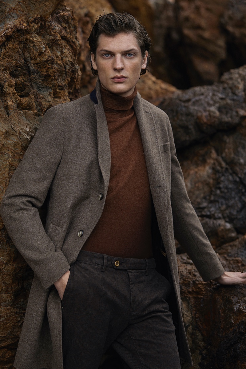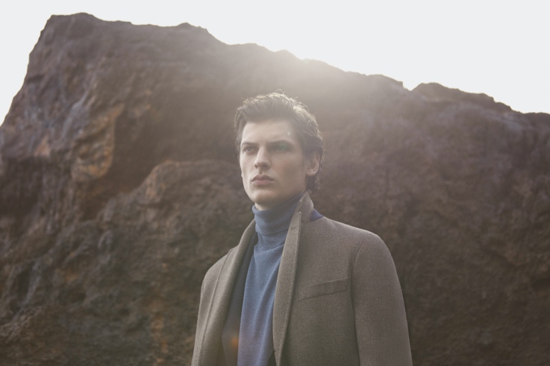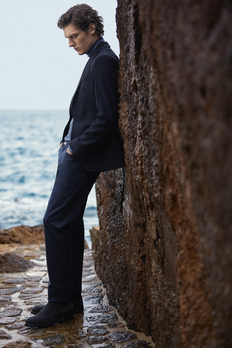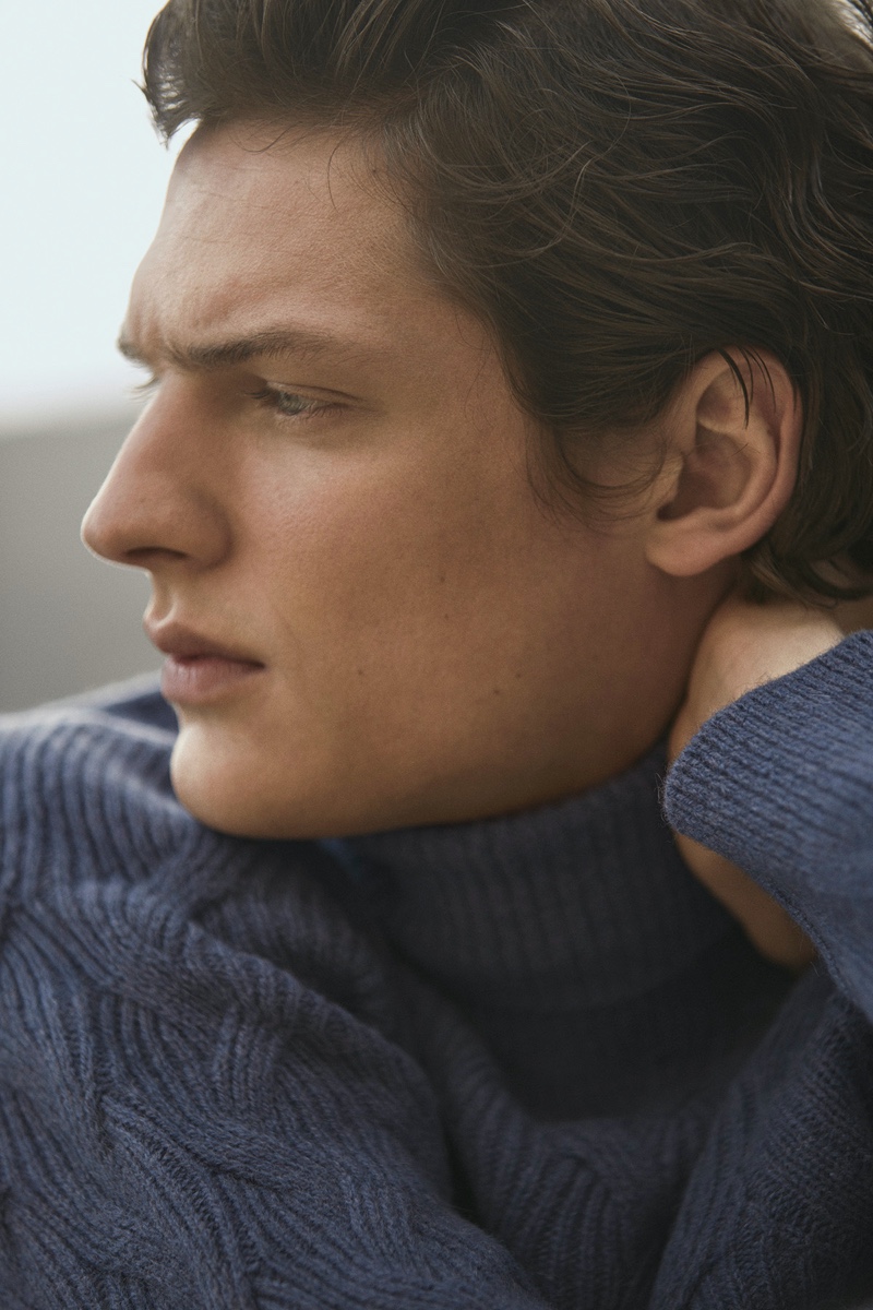 Once again in the spotlight for Massimo Dutti, model Valentin Caron ventures outdoors. He connects with photographer Pablo Saez for the occasion. Embracing neutral tones, Valentin dons a sleek wardrobe with elegant tailoring. Front and center, Valentin models menswear essentials that range from single-breasted coats and turtleneck sweaters to suit jackets. Massimo Dutti also spotlights smart casual style with the inclusion of dark rinse denim jeans.
