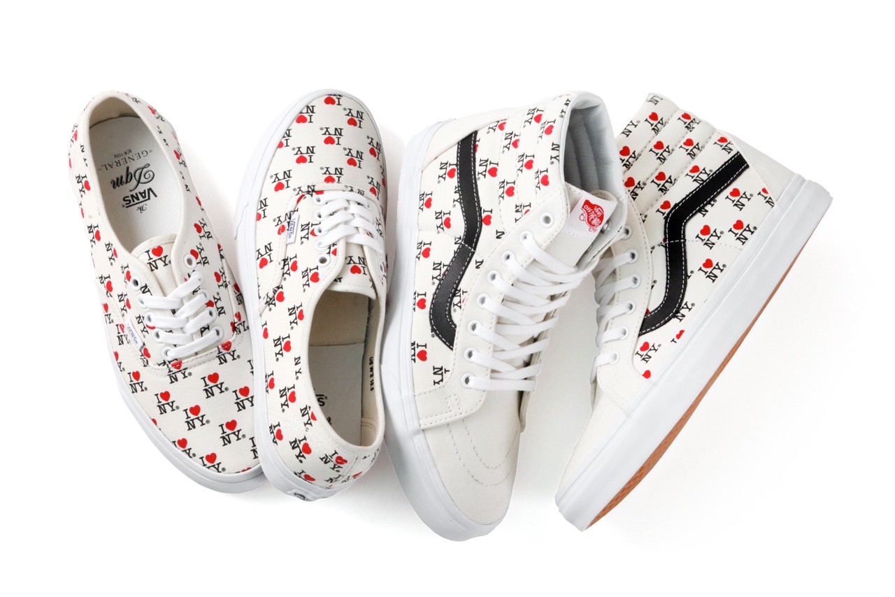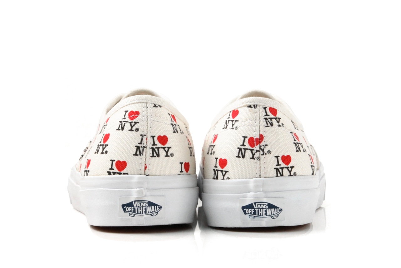 I Love New York–Taking one of the most iconic logos of all time, Vans DQM General introduces their newest capsule collection available starting April 19th, 2013. Featuring the famous I Love New York logo designed by Milton Glaser in 1977 that soon became the icon of New York City, the line will feature the graphic-printed canvas on two classic Vans silhouettes, the Authentic and the Sk8-Hi.