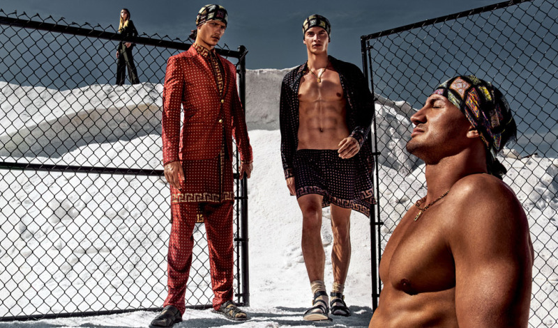 Enlisting fashion photographer Steven Klein for its spring-summer 2016 campaign, Versace travels to a California salt marsh. Putting its men in an unusual setting, Versace hones in on its individuality as a brand. Donning the latest fashions from Donatella Versace, models Benjamin Benedek, Lukasz Grabowski and Nathaniel Visser are styled by David Bradshaw.