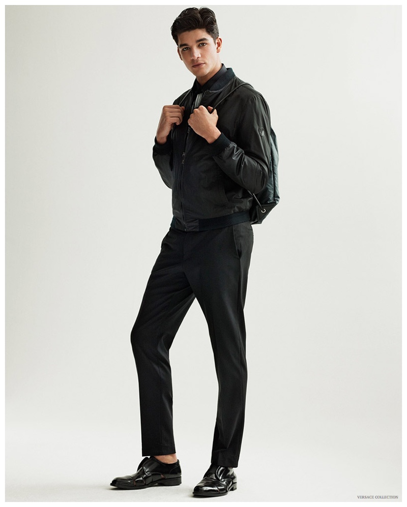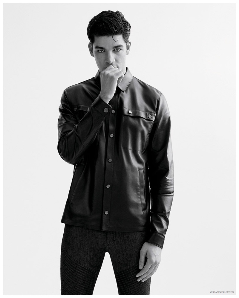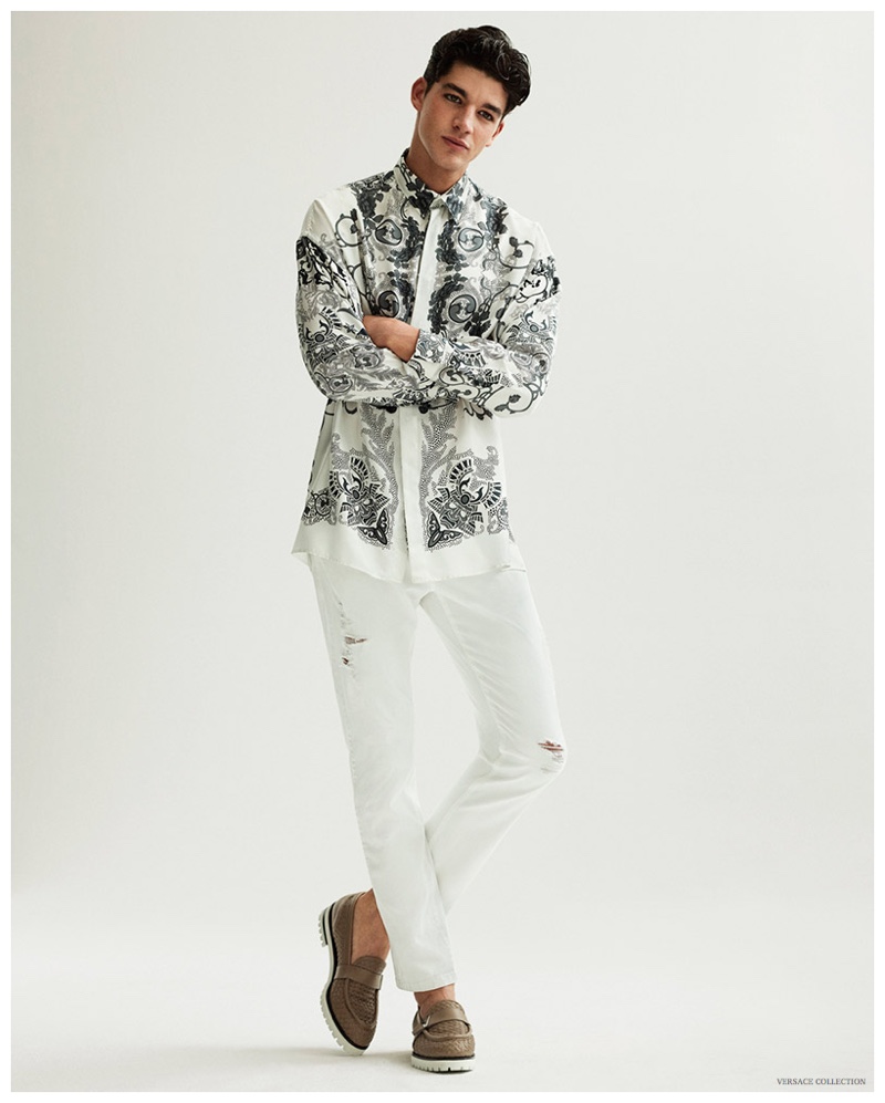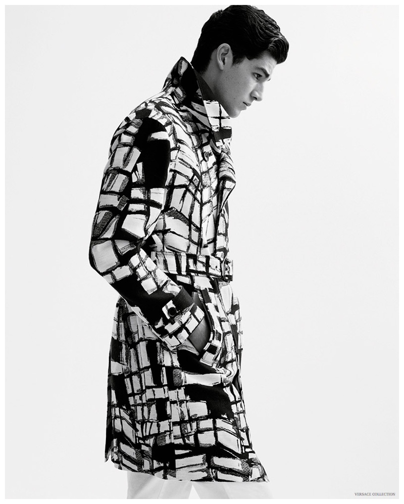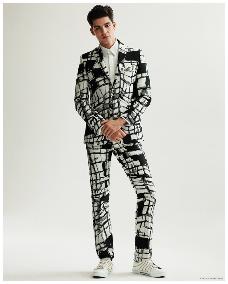 While Versace’s spring 2015 campaign highlighted the mainline’s bright, solid colored suiting, inspired by Havana, Versace Collection embraces a mix of neutrals and signature, intricate prints. Model Tarik Lakehal is front and center for the outing, donning a wardrobe that showcases the Italian label’s balance of tailoring and engaging character.
