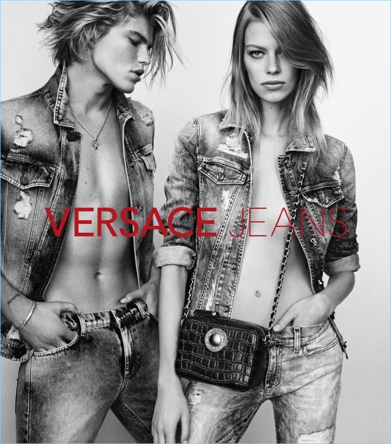 Hot on the heels of advertisements for Pepe Jeans, Giuseppe Zanotti, and Roberto Cavalli, Jordan Barrett adds another campaign to his portfolio. The Australian model is front and center for Versace Jeans’ spring-summer 2017 efforts.