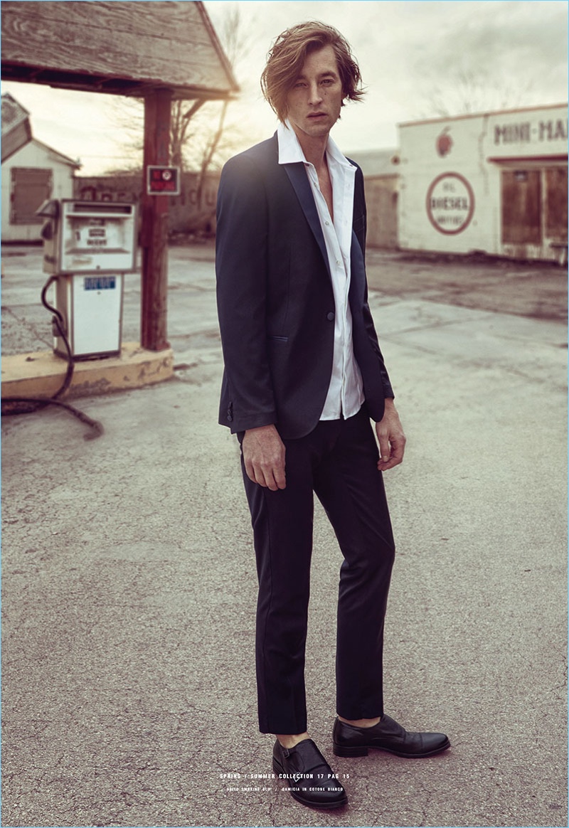 Victor Cool taps model Joel Frampton as the star of its spring-summer 2017 campaign and catalogue. The British model links up with photographer Joseph Cardo for the stylish outing. Embracing a retro vibe, Joel wears standout looks by the brand. Stylist Vincenzo Quinto pieces together a smart mix of ensembles that showcase Victor Cool’s casual and elegant sides. / Grooming by Henzo Lorusso.