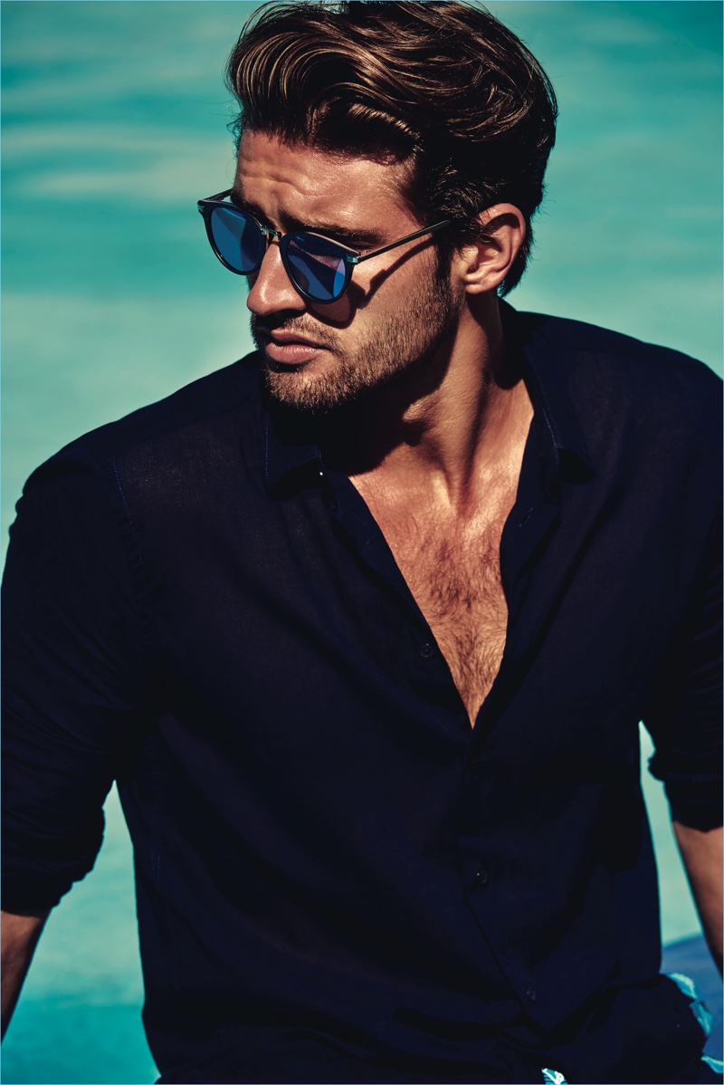 Vilebrequin introduces a new line of sunglasses with its unisex Sunshade collection. Model Jack Tyerman lends his face to the outing. Luxuriating poolside, the Australian model wears the range’s standout sunglasses. Embracing modern shapes, Vilebrequin’s sunglasses come with mono, polarized, and mirrored options. Produced by Carl Zeiss, the collection features perfect summer styles with expert craftsmanship.