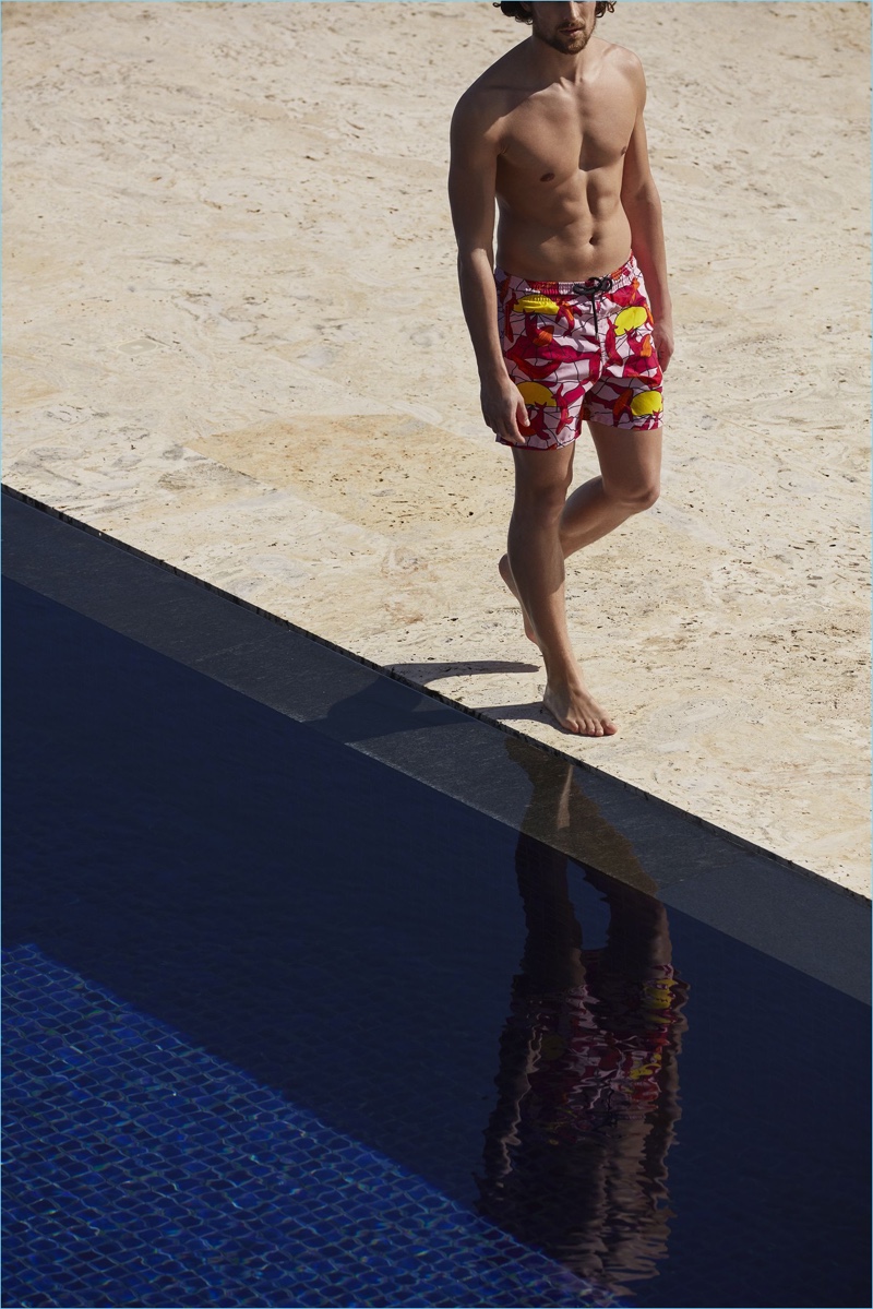 Wouter Peelen soaks in the sun as he joins Vilebrequin for its summer 2018 outing. The Dutch model fronts the brand’s campaign and lookbook for the season. Embracing days of leisure, Wouter plays a family man as he takes to the beach. Bright colors are front and center for the occasion. Various prints and solid hues decorate swim shorts. In addition to its signature swimwear, Vilebrequin presents summer essentials such as the polo and lightweight button-down.
