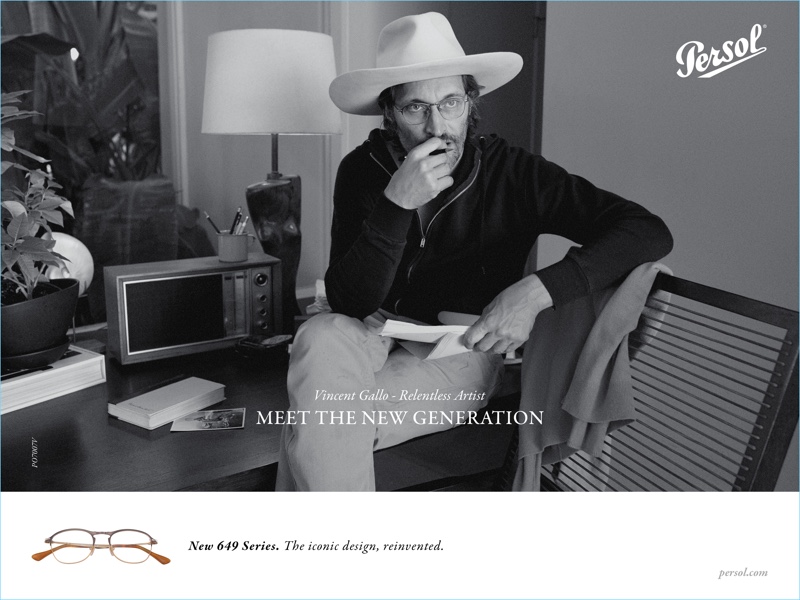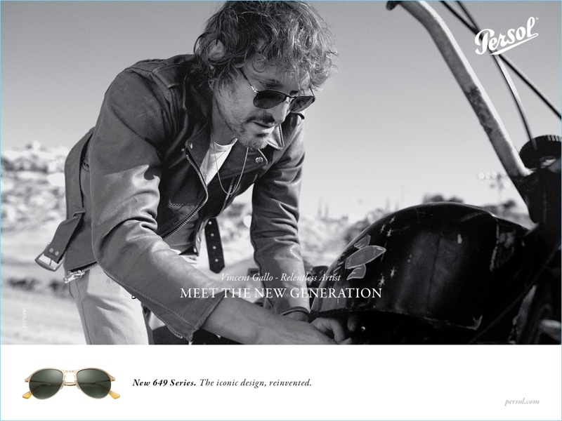 Persol introduces the second chapter of its Meet the New Generation campaign with the multi-talented Vincent Gallo. The advertisement captures the many passions of Gallo, who enjoys acting, directing, painting, and race car driving. Celebrating its 100th anniversary, Persol puts the spotlight on its reinvention of its 649 Series. Here, Gallo takes the reigns from Scott Eastwood, portraying the “Relentless Artist”. Photographer Zackery Michael captures Gallo in four different styles from Persol’s 649 Series.