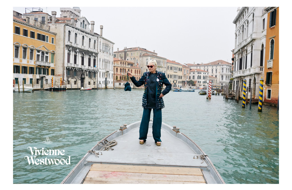 Vivienne Westwood presents quite the eccentric vision for her spring-summer 2016 campaign. Entitled Mirror the World, the outing reunites the British designer with fashion photographer Juergen Teller. Using the opportunity to bring attention to the saving of Venice, Westwood visited the tourist location for her advertisement, sharing, “The problem there is one of repair, mass tourism on cruise ships and of climate change. Shot around the alleys and canals, shipyards and palazzos of Venice, the campaign highlights the beauty and decay of Venice and the urgent need to save it.”