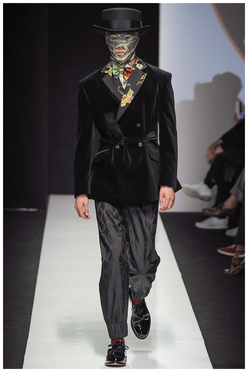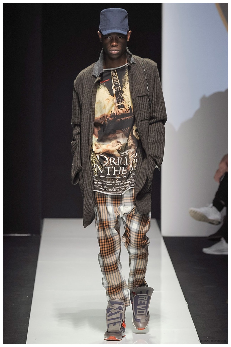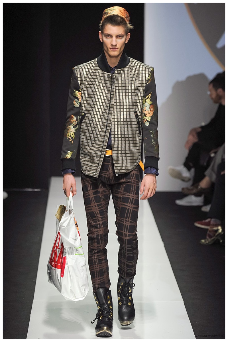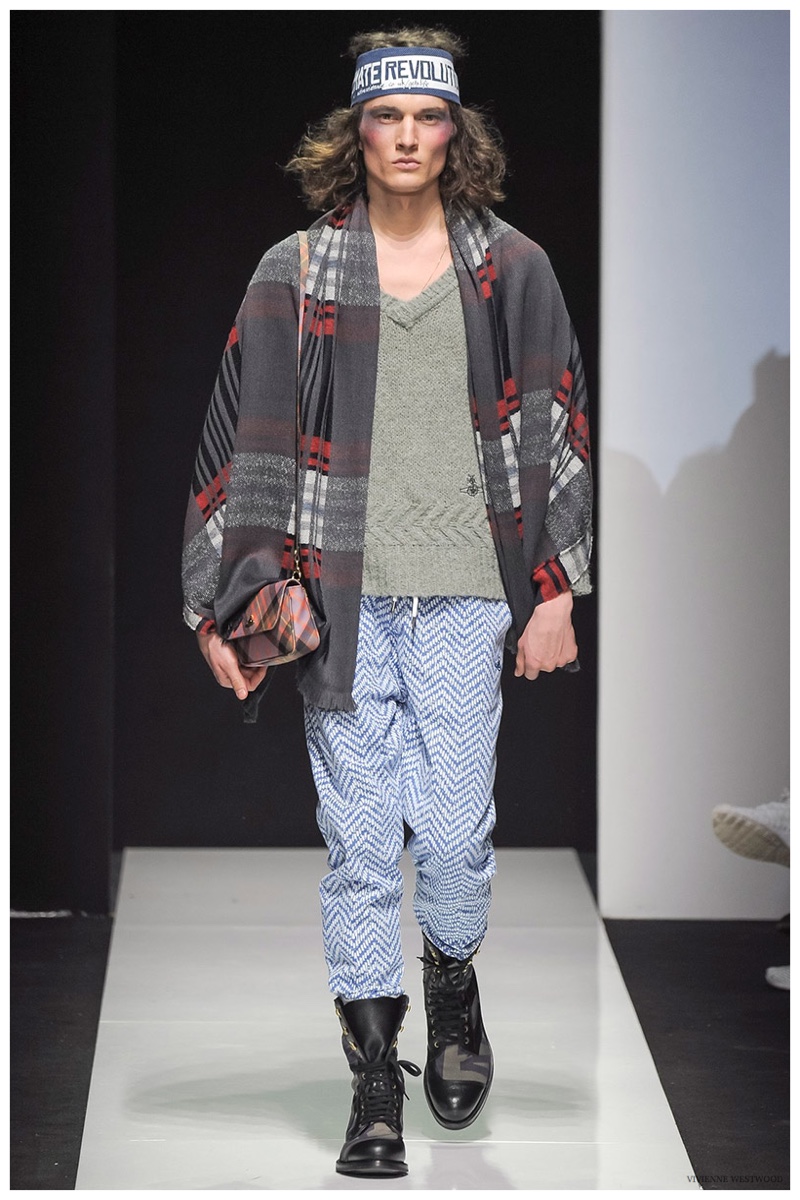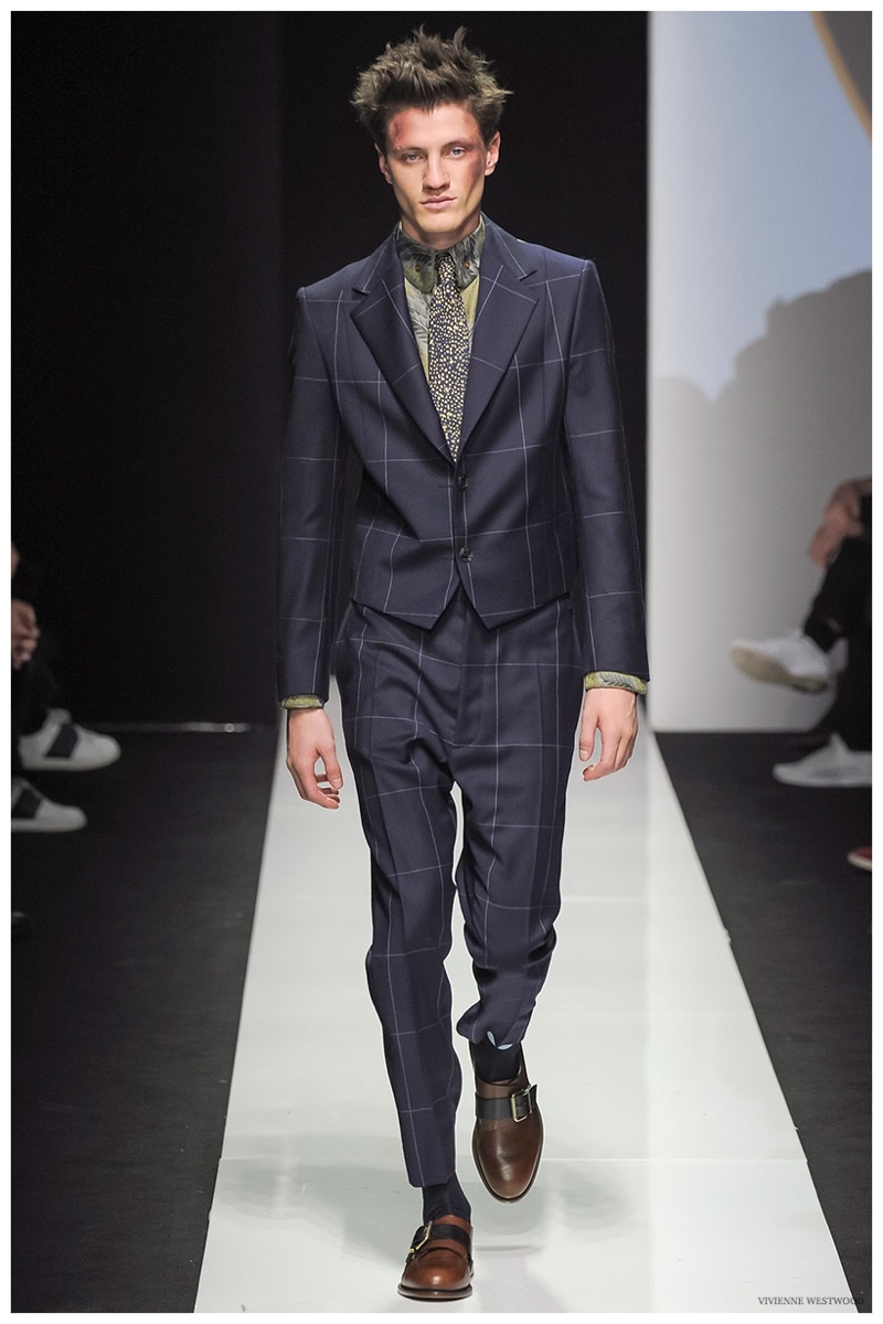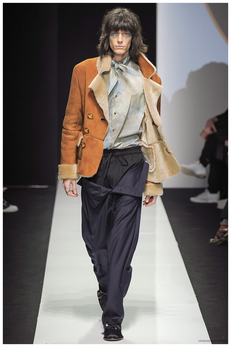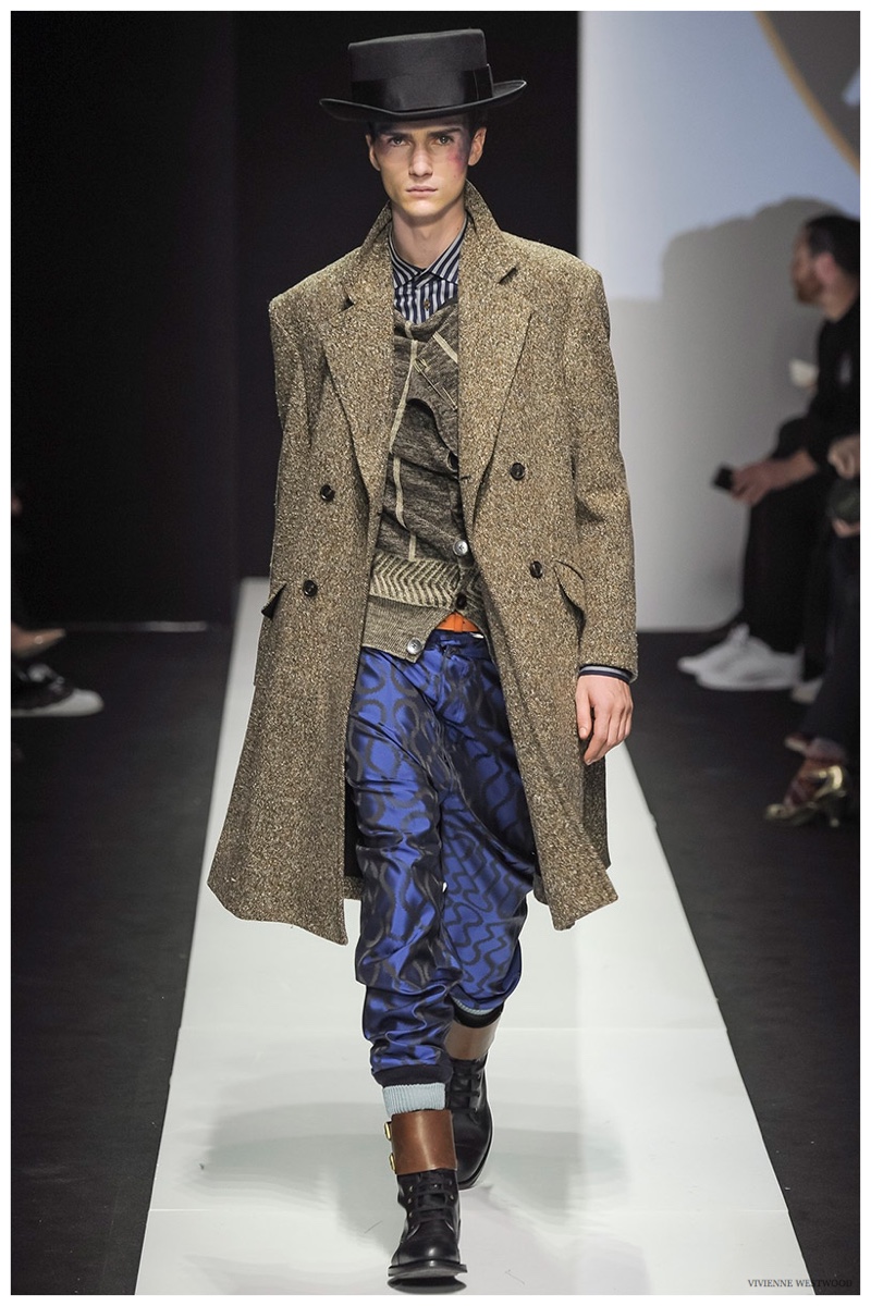 Sending both male and female models down the catwalk, Vivienne Westwood made a statement on gender neutrality with her latest outing. Tailoring and soft knitwear were the focal points for the season as theatrics were incorporated into lively prints. Always displaying a sense of humor, the fashions may have had a dandy spin, but the finishes were lighthearted. Plaids and houndstooth were of a graphic quality like they were lifted from a comic book while checks and jacquards were set askew. Layered with an urban finesse, knitwear and sporty separates added a fun spontaneity to a stellar lineup.