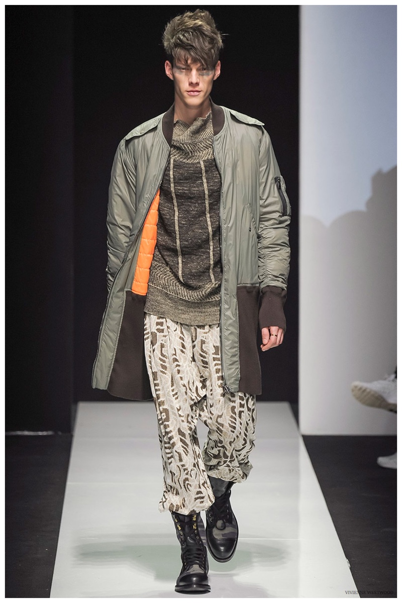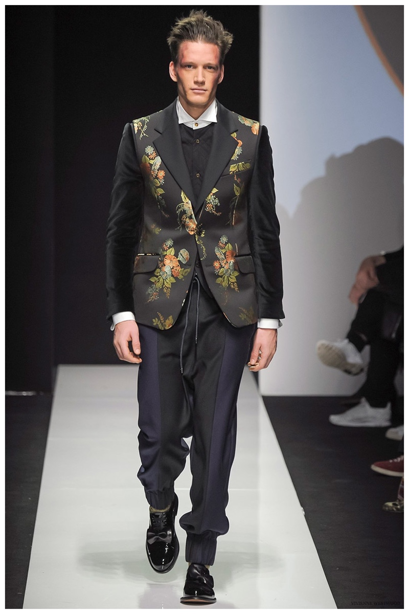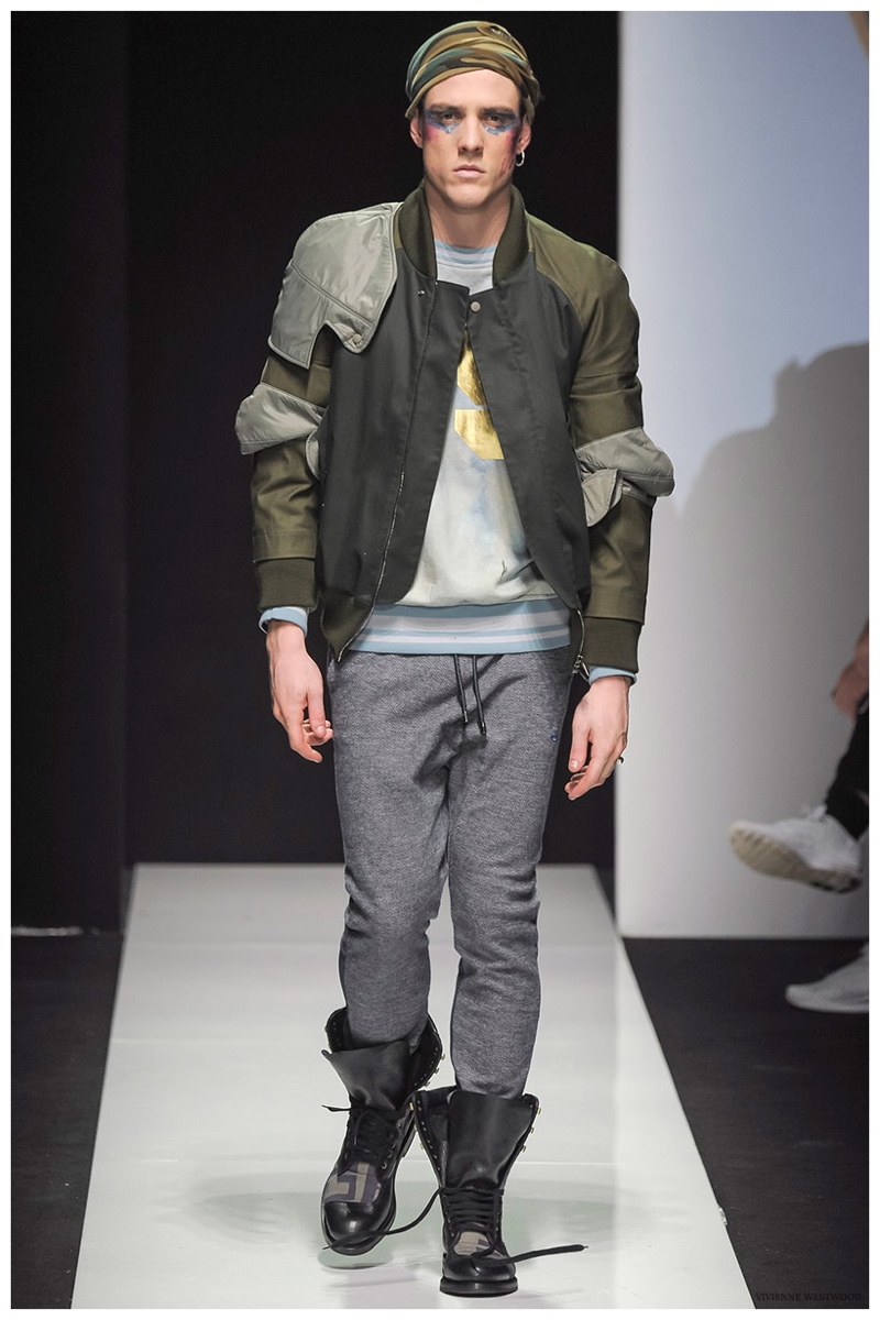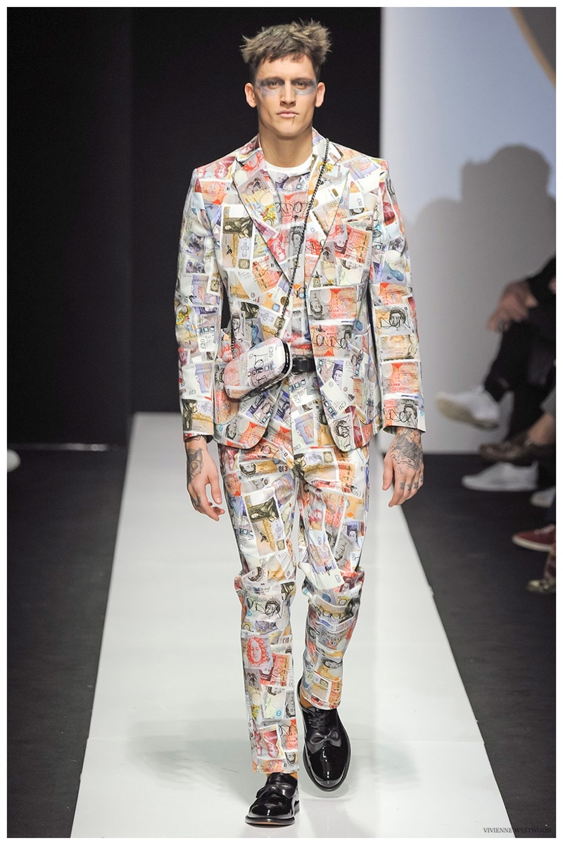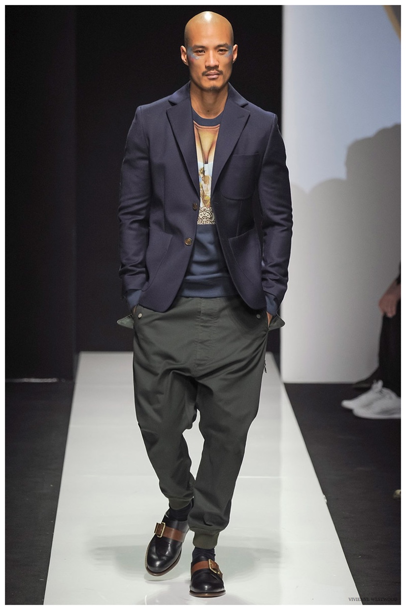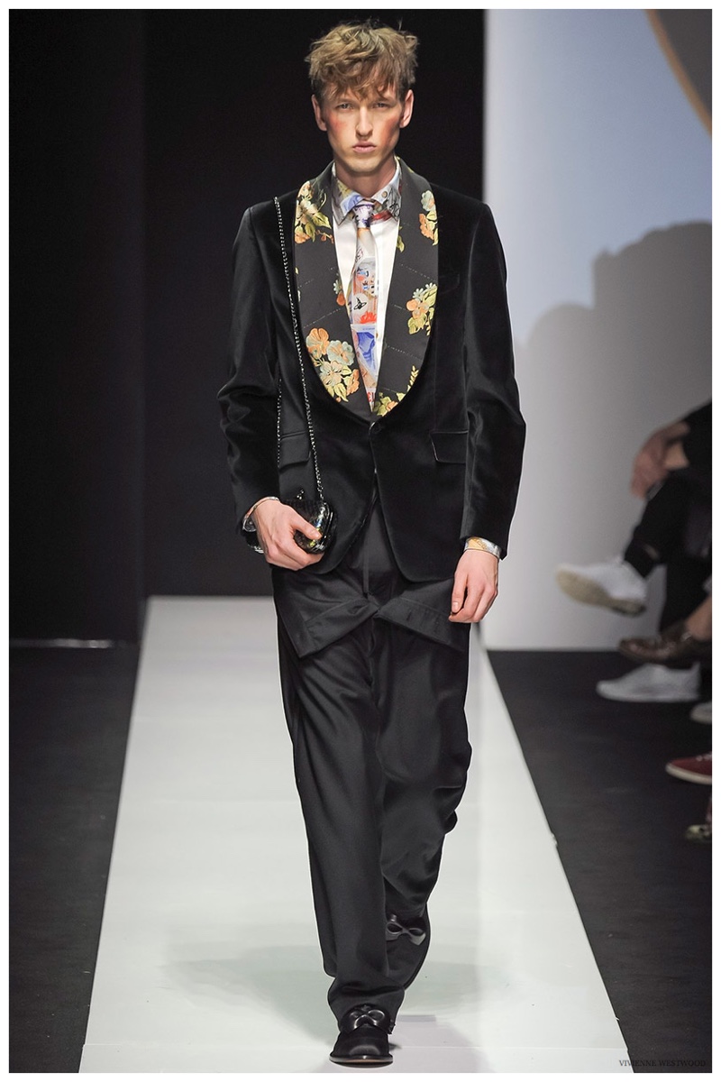 Sending both male and female models down the catwalk, Vivienne Westwood made a statement on gender neutrality with her latest outing. Tailoring and soft knitwear were the focal points for the season as theatrics were incorporated into lively prints. Always displaying a sense of humor, the fashions may have had a dandy spin, but the finishes were lighthearted. Plaids and houndstooth were of a graphic quality like they were lifted from a comic book while checks and jacquards were set askew. Layered with an urban finesse, knitwear and sporty separates added a fun spontaneity to a stellar lineup.