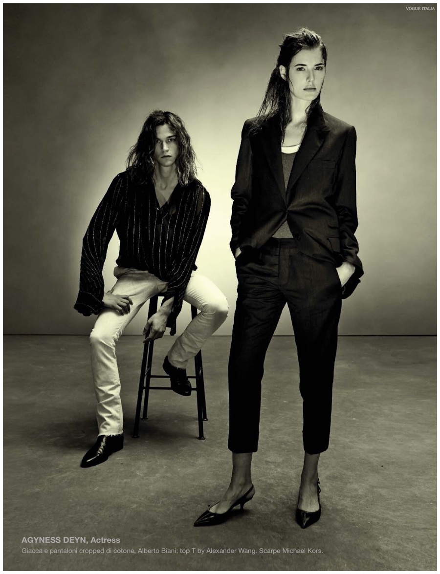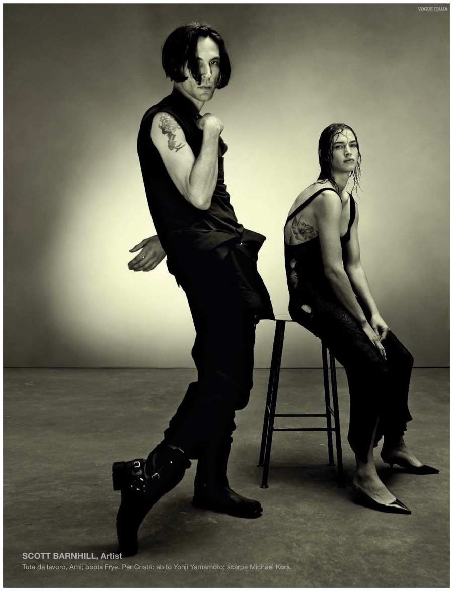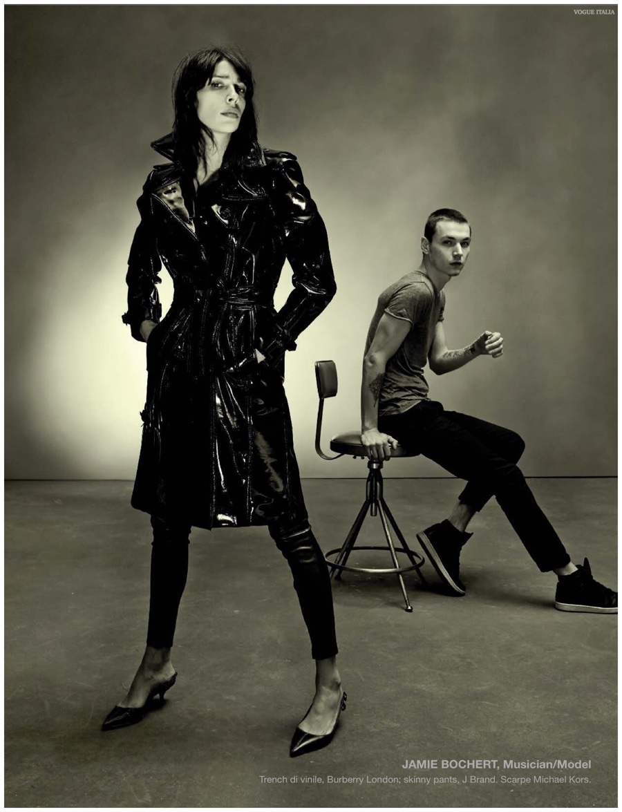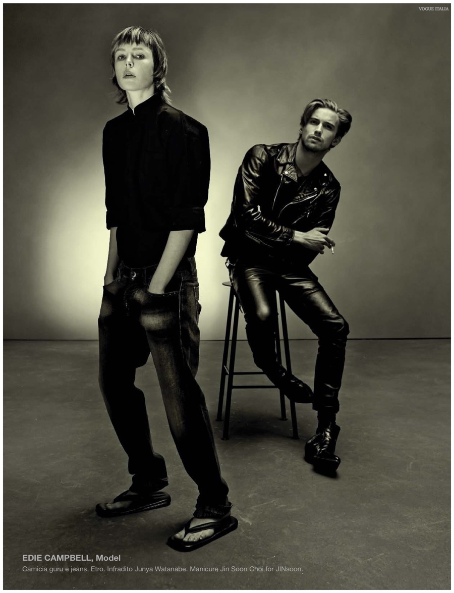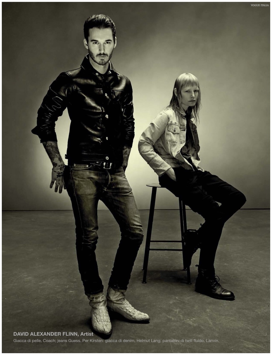 Alchemy–Partnering with stylist Karl Templer, fashion photographer Steven Meisel captures a dark portrait study for the pages of Vogue Italia’s March 2015 issue. Real-life couple Zachary Quinto and Miles McMillan are featured in the story in addition to Meisel muses that include RJ King, Yuri Pleskun and David Flinn. Sporting black spring fashions from Saint Laurent, Dries Van Noten and other labels, Christopher Niquet, Harry Brant, Joel Schumacher and Benn Northover pose for quite the photos.