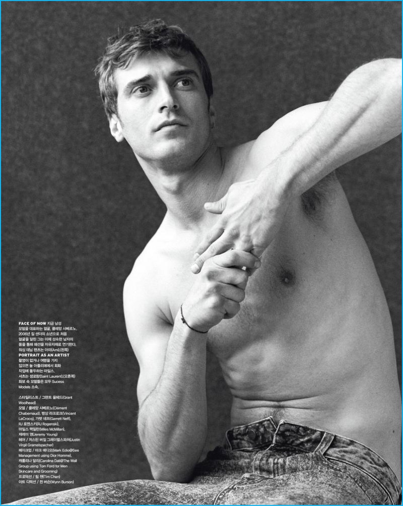 Clément Chabernaud goes shirtless for the pages of Vogue Korea.