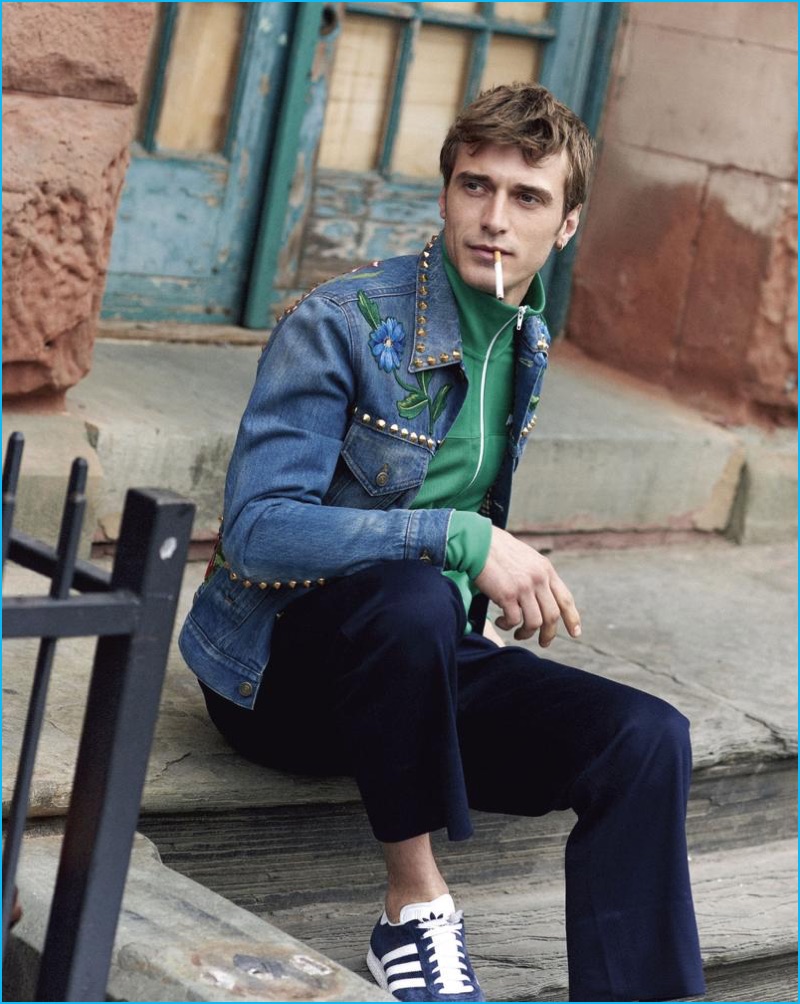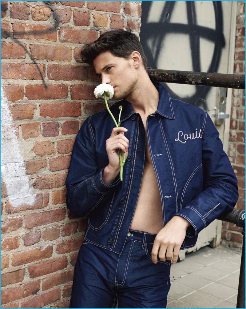 Garrett Neff dons a denim look from French fashion house Louis Vuitton.Pin
