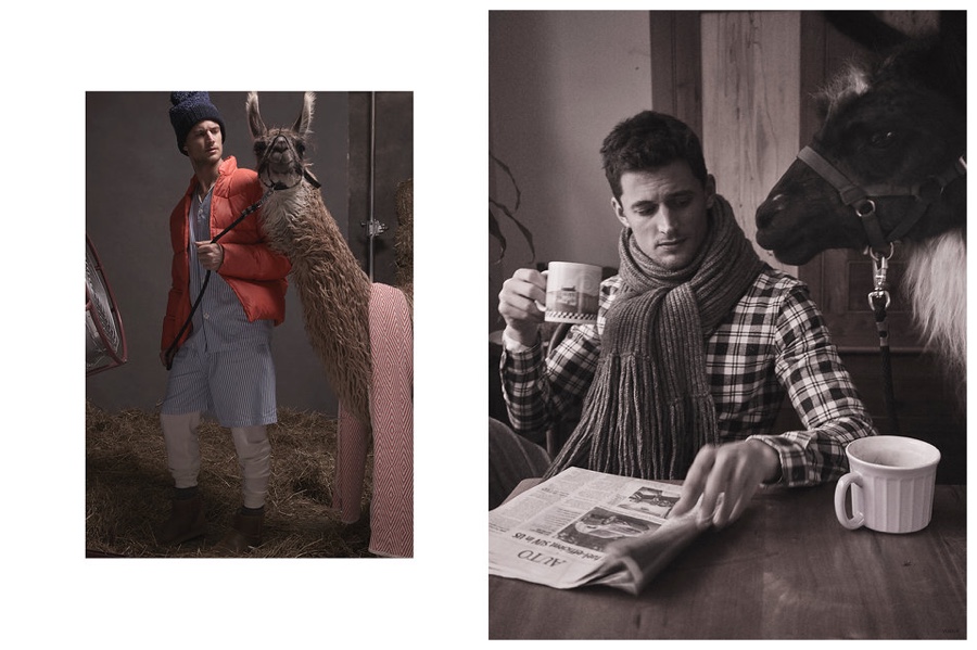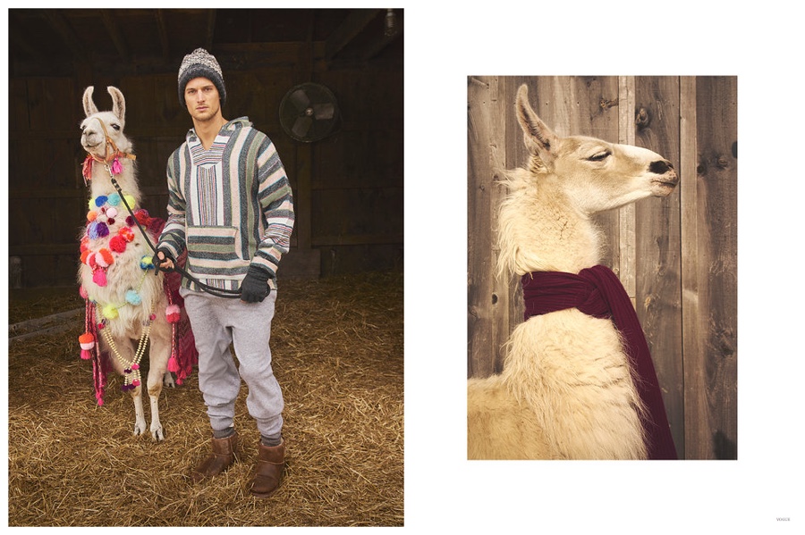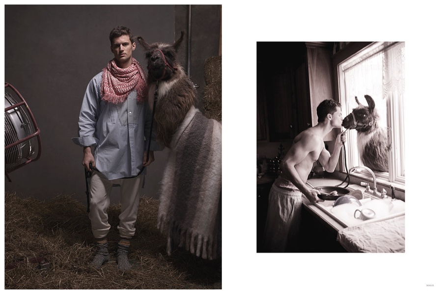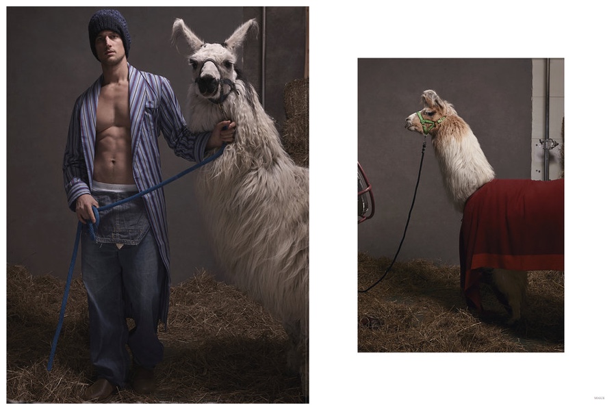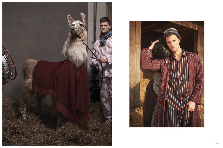Things are getting a little weird over at Vogue.com. Editors have recently found themselves to be obsessed with llamas and the weird passion has spilled over into a shoot created by People Having Fun. Tapping American model Garrett Neff for a shoot in Tully, New York, the feature captures him in pajamas with plenty of llamas. Weird or chic?